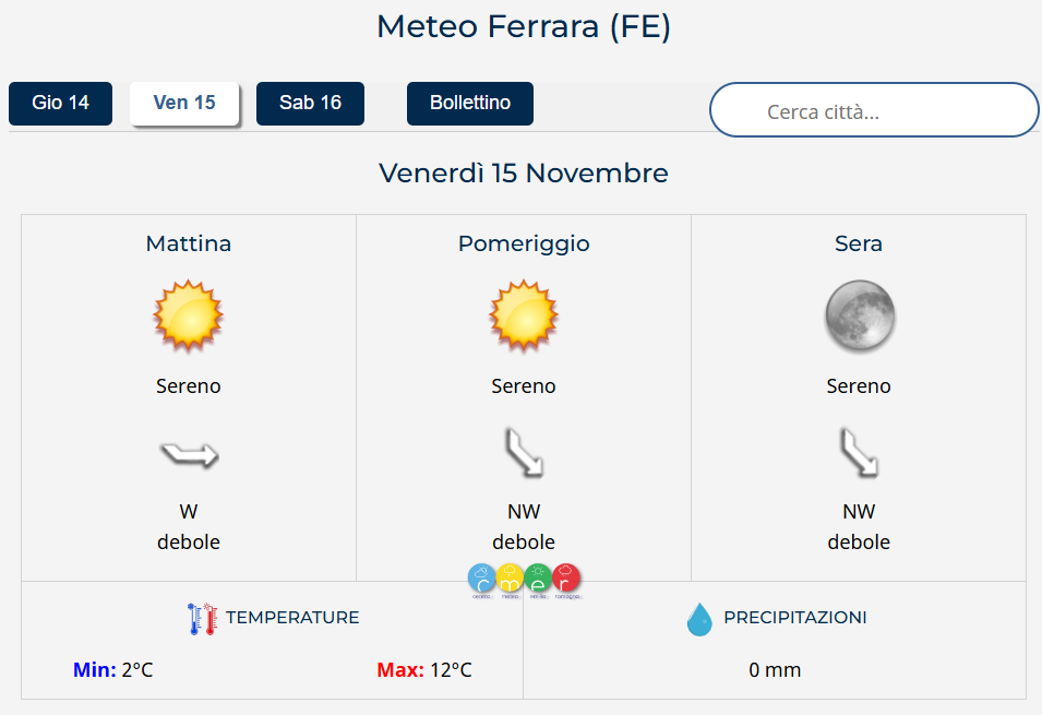 Stato del cielo: coperto tra notte e mattino, poi progressive schiarite. Foschie dense dalla sera. Precipitazioni: deboli tra mattino e primo pomeriggio, poi assenti. Temperature: minime comprese tra +3°C e +4°C, massime comprese tra +8°C e +10°C. Venti: deboli dai...
