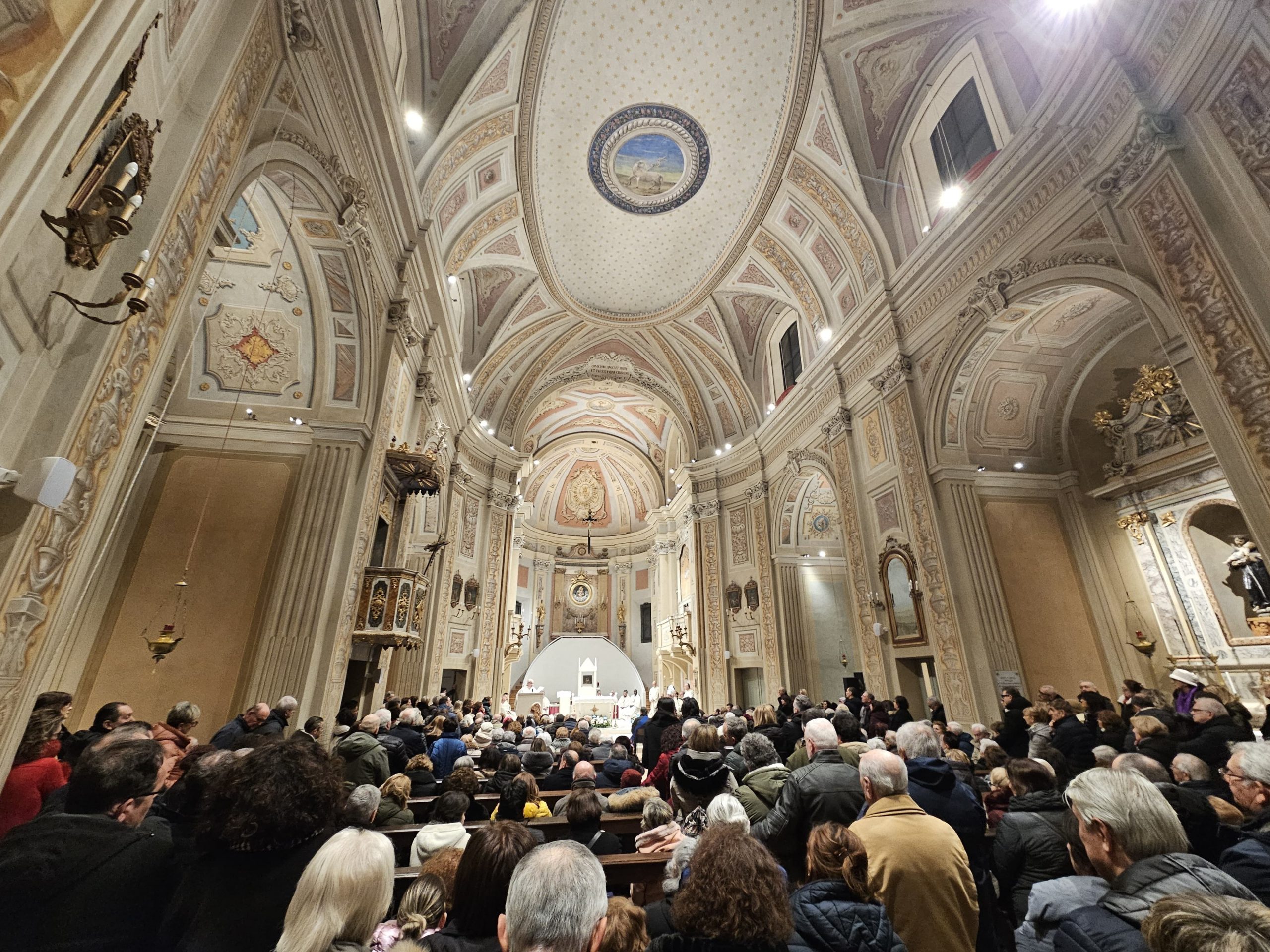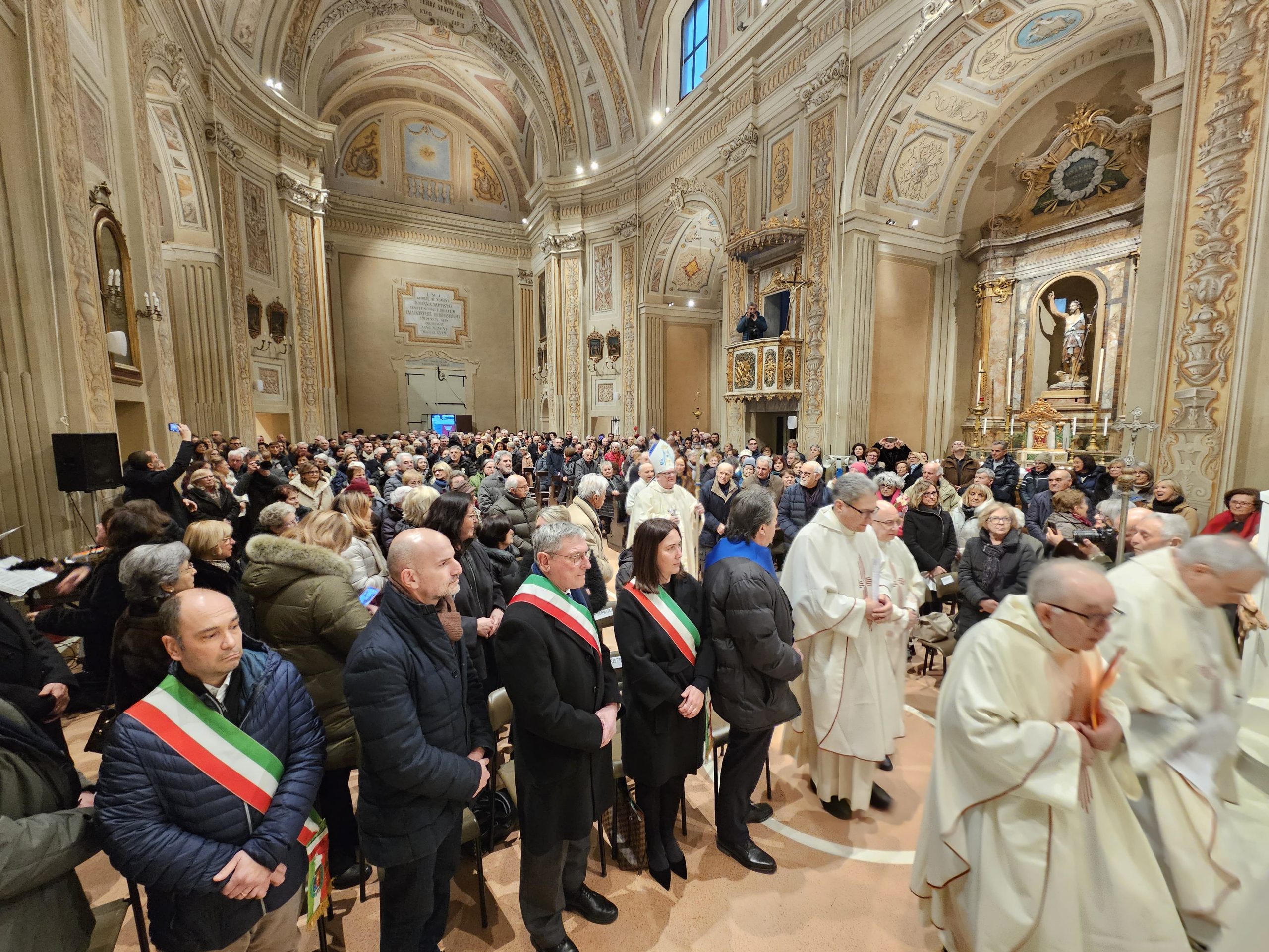Chiesa gremita di fedeli e curiosi cittadini per assistere alla prima funzione celebrata dall’arcivescovo di Ferrara e Comacchio Gian Carlo Perego, e per guardare da vicino i lavori di ristrutturazione che hanno portato al recupero dell’edificio costruito nel 1790, in sostituzione dell’antico oratorio la cui presenza è narrata nei documenti a partire dal 1314 e poi ricostruito nel 1617.