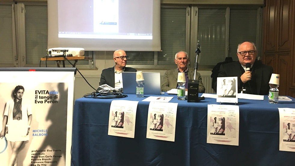 Fra i relatori, oltre all’autore, è intervenuto anche il vescovo Gian Carlo Perego, che ha inquadrato l’importanza sociale delle azioni compiute da Evita durante la sua brevissima vita di 33 anni: “Seppur partendo da due orizzonti diversi – ha detto Perego – sia lei che papa Francesco mettono al centro innanzitutto la dignità delle persone. Mi sembrava importante segnalare il contributo che questa donna ha dato, vivendo la dimensione della carità non soltanto come beneficenza ma come un modo di ridare i diritti alle persone. Questo principio avvicina l’azione di Eva a quella della chiesa, considerando inoltre che la chiesa non può chiudere gli occhi di fronte alle ingiustizie e che non si può fare la carità dove è richiesta la giustizia”.