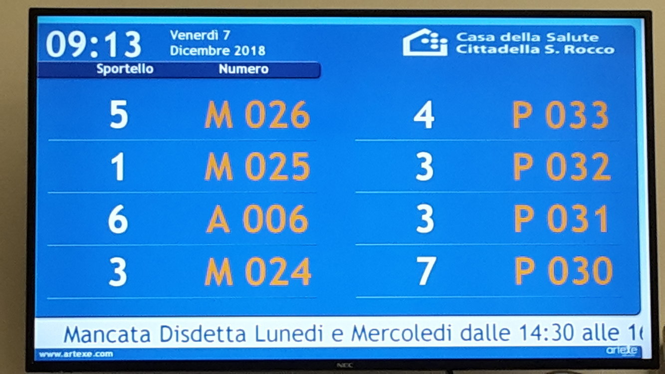 Il dispositivo, già attivo per la gestione delle code di attesa, con la nuova configurazione sarà in grado di gestire l’accesso al prelievo nel rispetto dell’orario di appuntamento. A tal proposito si ricorda all’utenza di accedere alla struttura preferibilmente con circa 10/15 minuti di anticipo rispetto all’orario del proprio appuntamento.