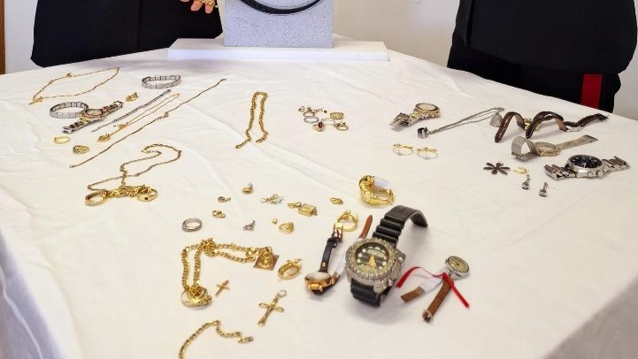 La meticolosa ispezione della struttura ha permesso ai carabinieri di smascherare un doppio fondo in legno in cui era nascosto un sacchetto di stoffa contenente numerosi monili in oro, tra cui collane, anelli, orecchini, bracciali e vari orologi, del peso complessivo di 600 grammi.