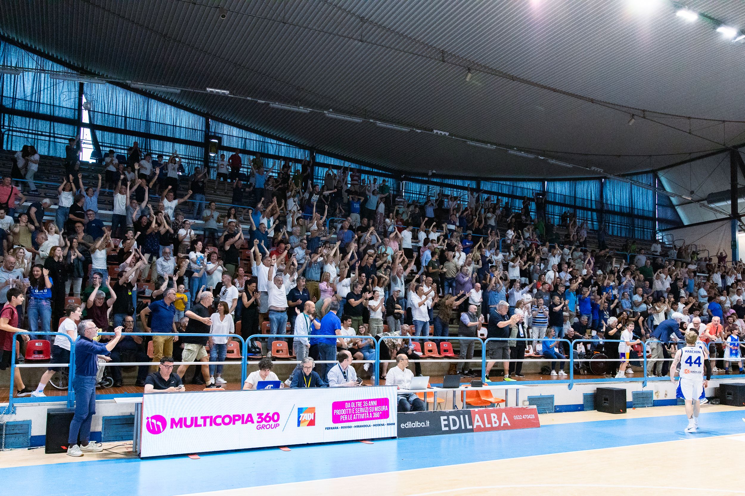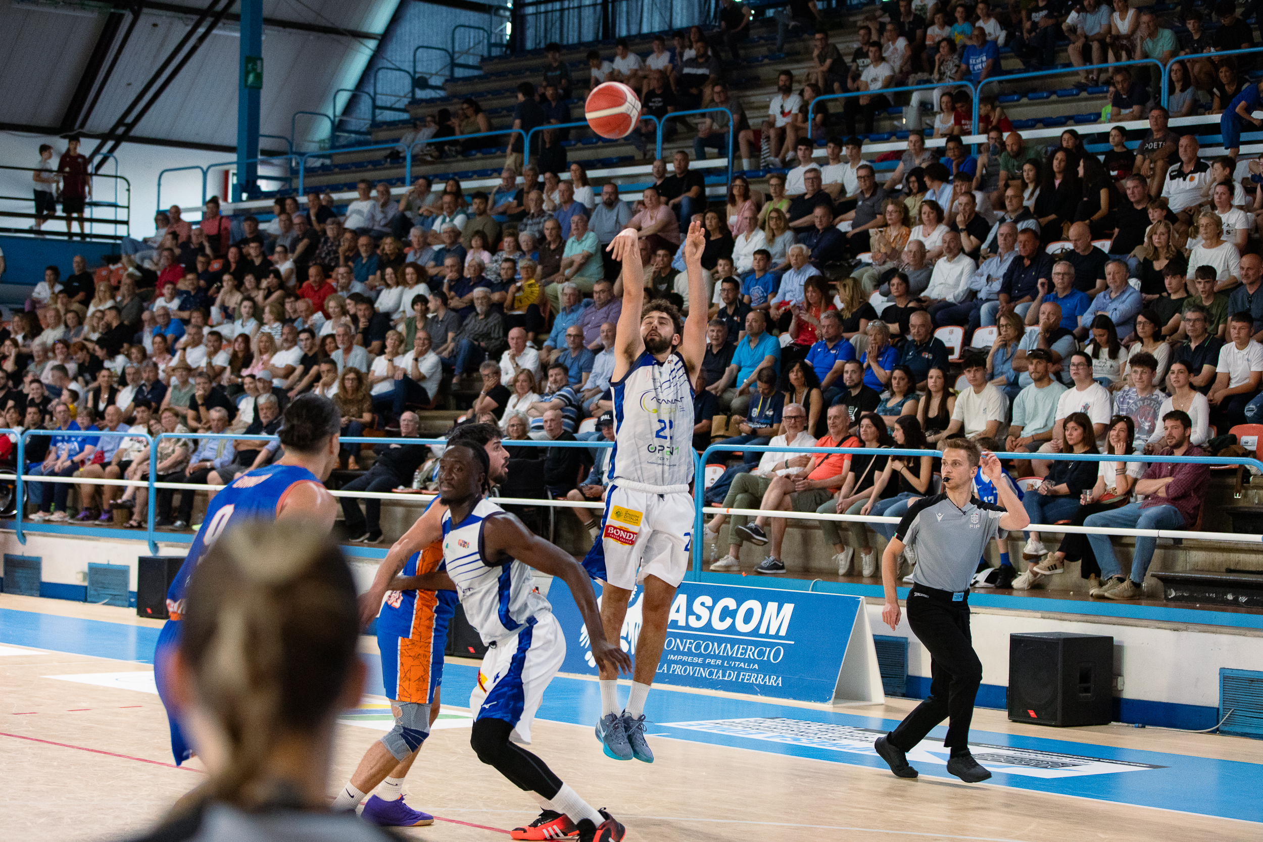 Ferrara è in grane difficoltà, e si aggrappa all’energia di Tio, quando Tosetti firma il -7. Drigo interrompe il parziale, ma la difesa biancazzurra non è più quella di prima: la Sangiorgese si riavvicina sul 66-64 di Bianchi, ela Bondi Arena si riaccende sulla tripla di Santiago. Ma non è finita qui: ancora Zilius e Tosetti tengono vive le speranze ospiti: è 70-69, quando si ferma il gioco per il brutto colpo subito da Tio.