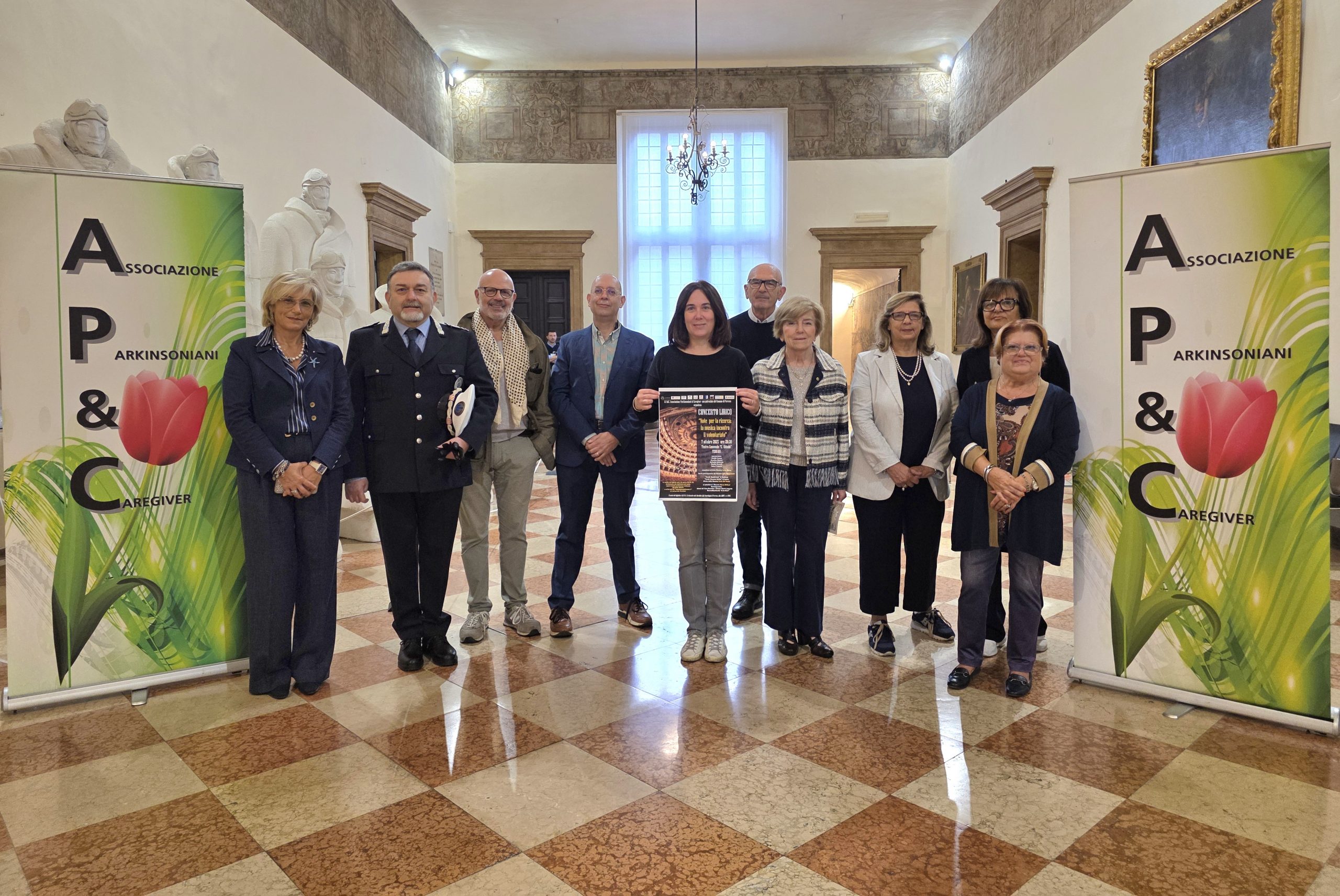 L’evento è stato presentato dall’assessore Cristina Coletti, con Guglielmo Piva e Veronica Liverani (presidente e vicepresidente dell’Associazione Parkinsoniani & Caregiver), Carlo Bergamasco (direttore generale della Fondazione Teatro Comunale), Mariachiara Sensi (dirigente medico in Neurologia presso il Dipartimento di Neuroscienze Riabilitazione dell’Arcispedale Sant’Anna), Fulvio Massa (consulente artistico), Claudio Rimondi (rappresentante dei cantanti), Loredana Elia (responsabile comunicazione di LyondellBasell) e Francesca Tassinari (presidente Lions Club Ferrara Diamanti).