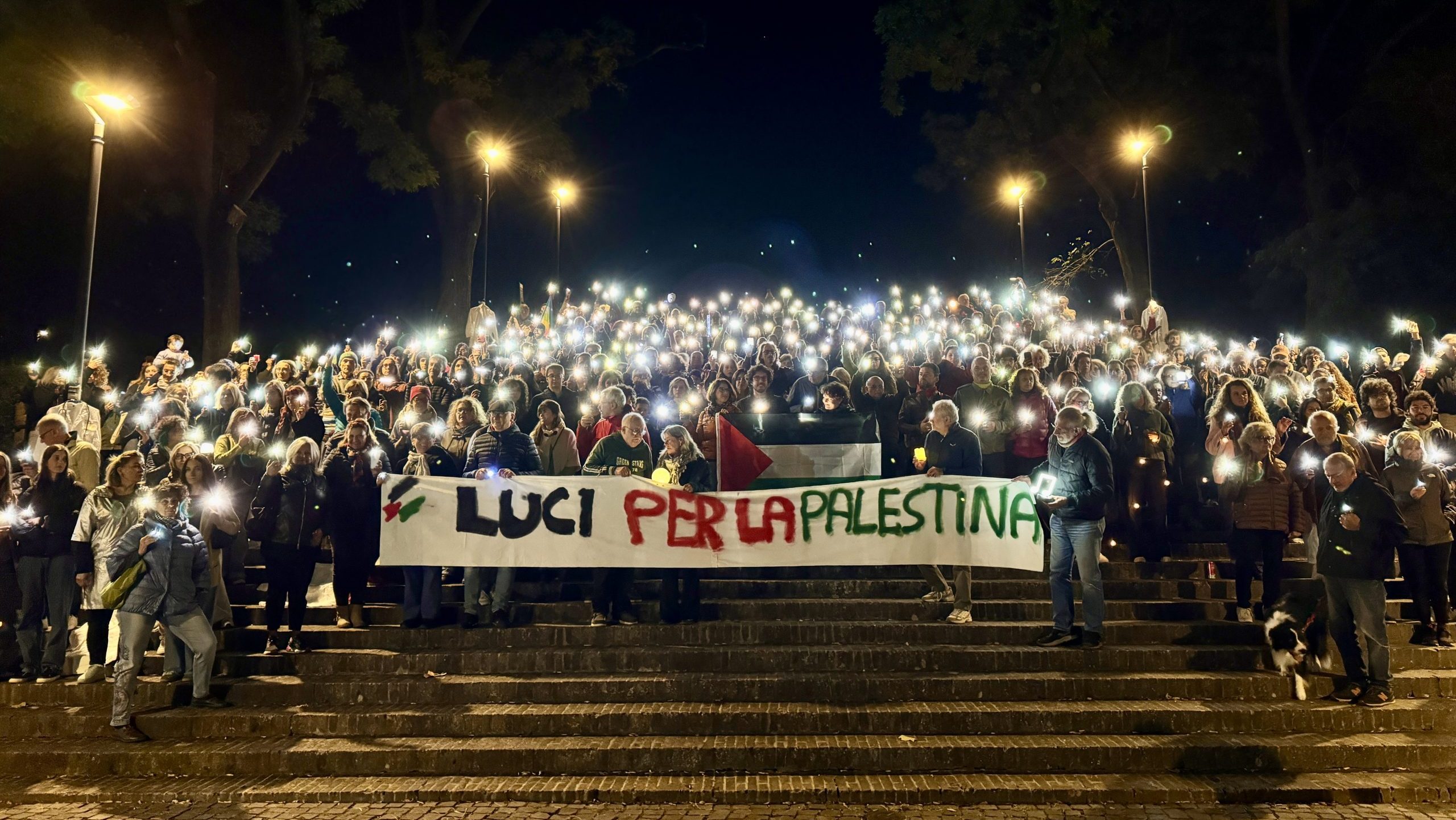 La manifestazione si è conclusa in un’atmosfera intensa e composta, con le luci ancora accese a testimoniare un impegno che vuole continuare: mantenere viva la memoria delle vittime e chiedere con forza la fine della violenza su Gaza.