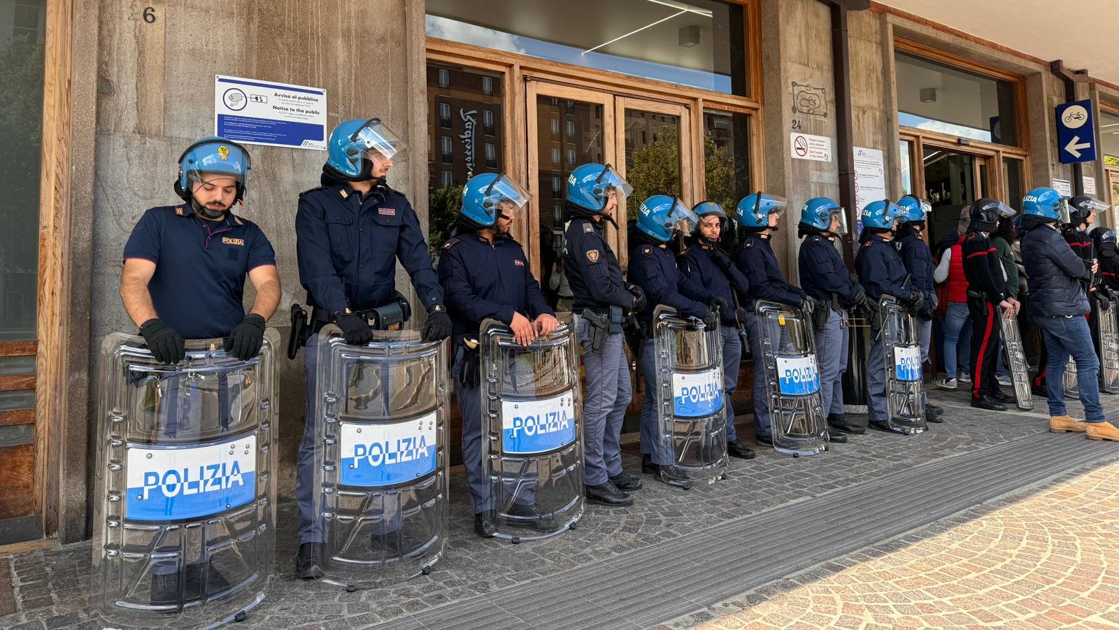Ad attenderli circa una quarantina di agenti della polizia di Stato e carabinieri in assetto antisommossa, schierati davanti alle porte centrali della stazione, mentre quelle laterali sono state chiuse a chiave. Il dispositivo di sicurezza è stato attivato per evitare qualsiasi tipo di interruzioni al pubblico servizio.