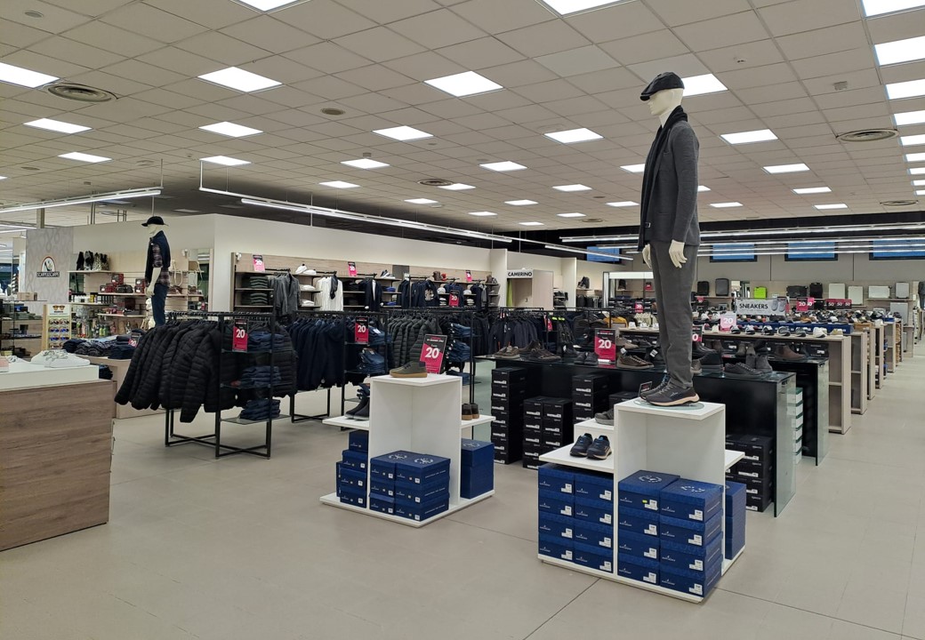 Il nuovo punto vendita conta 1.562 mq di superficie di vendita e offre lavoro a 16 professionisti. Al suo interno, oltre alle consuete aree dedicate alle calzature, si distingue anche una grande area sportiva di circa 450 mq.
