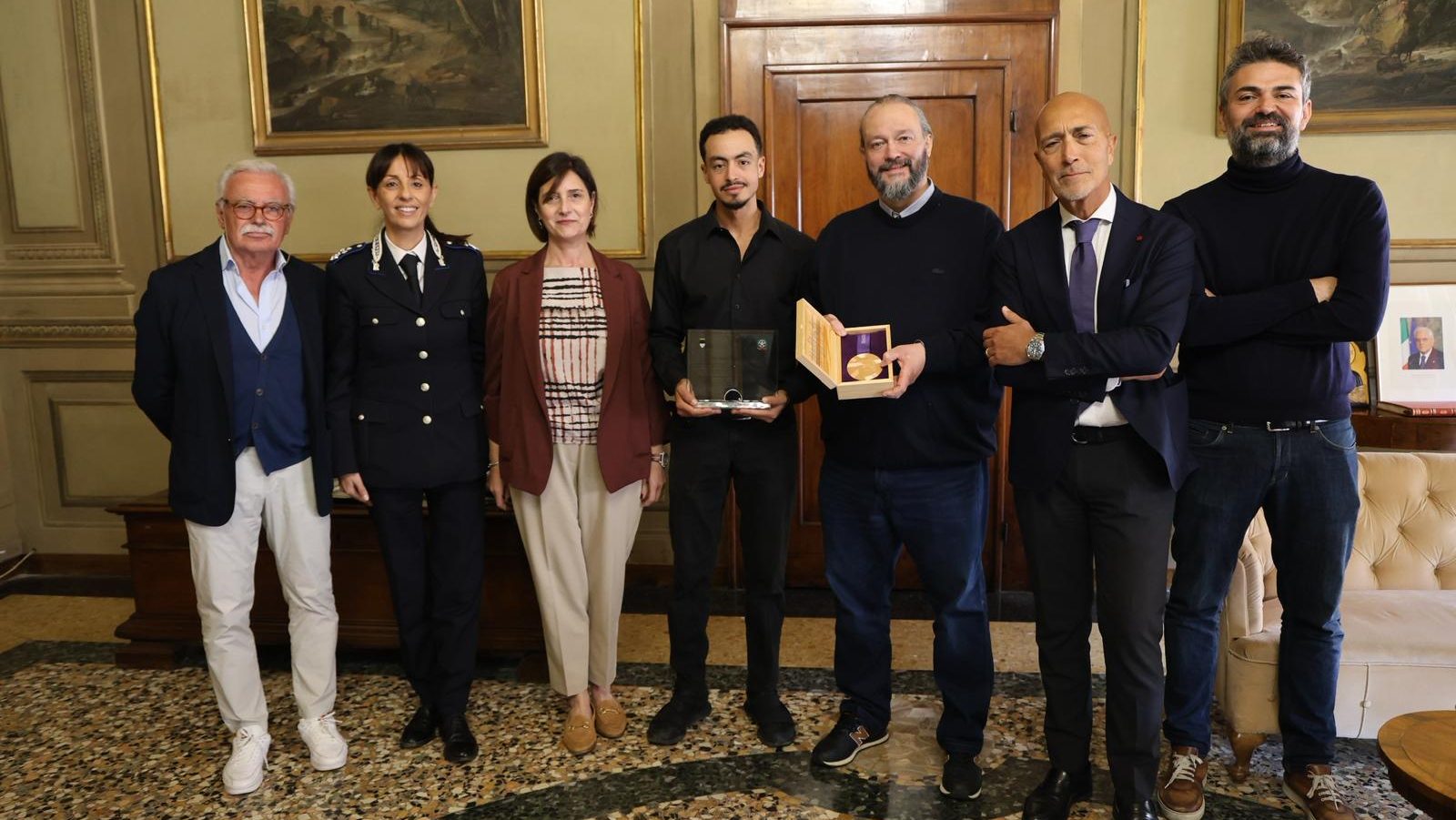 Al maratoneta della squadra azzurra Iliass Aouani, fresco della medaglia bronzo ai mondiali di Tokyo, è stato accolto in Comune per la consegna del riconoscimento da parte dei rappresentanti della comunità di Ferrara. Tra gli altri erano presenti il sindaco Alan Fabbri e il prefetto Massimo Marchesiello.