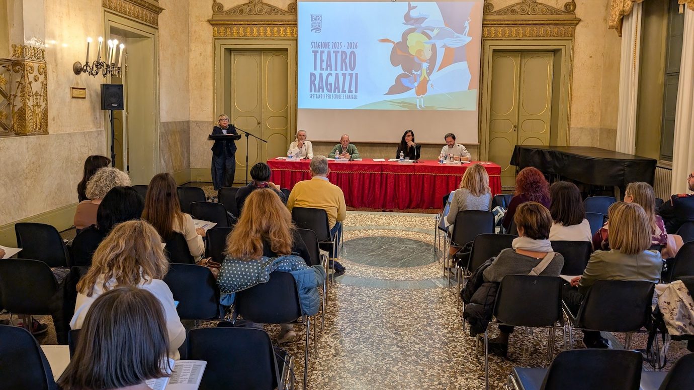 Alla conferenza stampa aperta alle scuole, che si è tenuta giovedì 9 ottobre 2025 al Ridotto del Teatro Comunale di Ferrara, hanno partecipato Carlo Bergamasco, direttore generale della Fondazione Teatro Comunale di Ferrara; Andrea Lugli, collaboratore alla direzione artistica di Teatro Ragazzi; Fabrizia Lotta, ideatrice del laboratorio di teatro e composizione drammatica e Giulio Costa, direttore artistico di Ferrara Off.