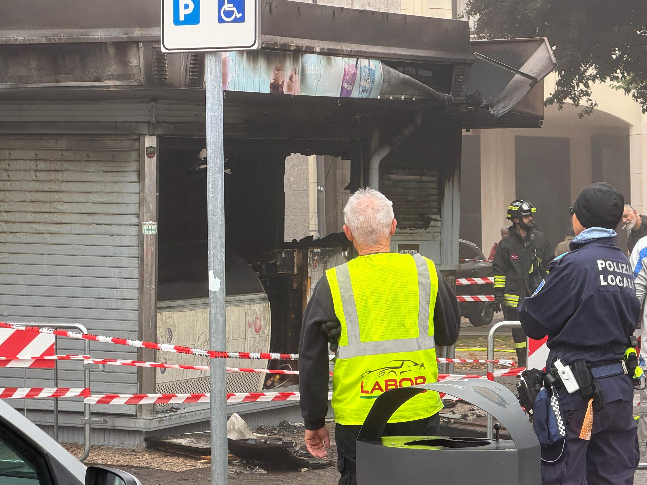 Non ci sono persone ferite, mentre la struttura chiosco – chiuso da mesi – è stata danneggiata in maniera seria.