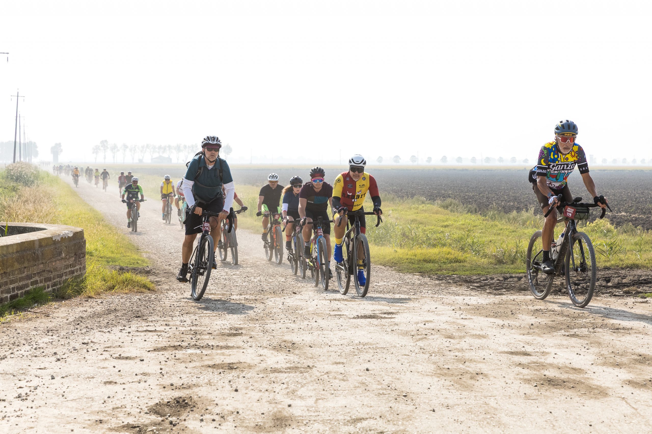 Grazie a Union Gravel i 450 iscritti, di cui il 20% donne e il 40% proveniente da fuori la provincia di Ferrara, ha assaporato le ricchezze artistiche del territorio dell’Unione dei Comuni Terre e Fiumi. Il percorso infatti ha portato i partecipanti ad attraversare tra i vari punti il giardino di Villa Mensa, la Città Metafisica di Tresigallo, la Chiesa Romanica di San Venanzio. È stato sempre un intreccio tra terra e acqua, con i numerosi tratti che scorrono lungo fiumi e canali: la ciclabile Destra Po lungo l’argine del Po, il sentiero all’interno del Parco perifluviale e arboreto di Ro, lo sterrato lungo il Po di Volano e il Canal Bianco, e nei luoghi del Bacchelli.