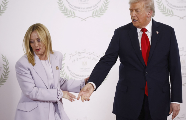 Meloni sorride tutto il tempo e Trump riesce a parlare di lei dandole le spalle senza mai pronunciare né il suo nome né il nome del paese Italia. Tanto basterebbe per far stramazzare i sovranisti di casa nostra, di cui Meloni è a capo, ma siccome il regista e sceneggiatore della scenetta è il presidente Usa, qualsiasi umiliazione può essere digerita.