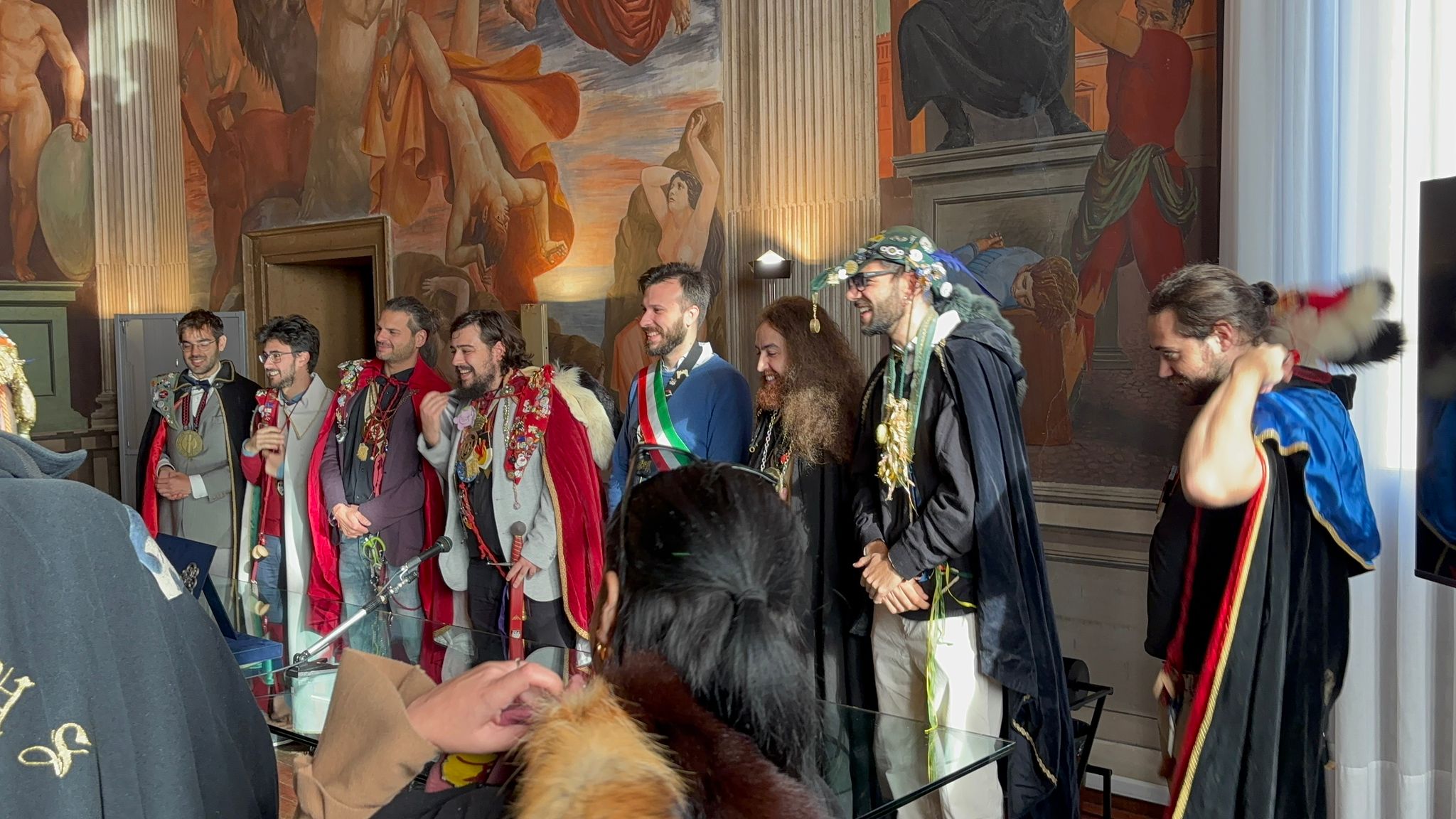 Il simbolico “passaggio di poteri” è avvenuto mercoledì 15 ottobre nella solenne Sala dell’Arengo. Una chiave maestosa, lunga ben 34 centimetri, è stata materialmente consegnata nelle mani del Duca della goliardia ferrarese, sancendo ufficialmente l’inizio di una settimana di festa per gli ottant’anni dell’Associazione Ferrarese Universitaria de li 4S.