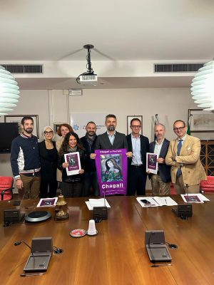 A fare il punto a lato della Conferenza stampa, Pietro Di Natale direttore della Fondazione Ferrara Arte sottolineando alcuni concetti: “Passeggiando in via Borgo dei Leoni cittadini e turisti incroceranno alcuni dei dipinti più significativi di Marc Chagall esposti a Palazzo dei Diamanti, dove celebriamo questo grande e amatissimo maestro dell’arte del Novecento nell’anniversario dei quarant’anni dalla sua scomparsa. La mostra è davvero un’occasione imperdibile: le duecento opere realizzate in oltre mezzo secolo di attività e le sale che presentano due sue celebri creazioni monumentali (la decorazione del soffitto dell’Opéra di Parigi e le vetrate della sinagoga di Hadassah a Gerusalemme) in una dimensione coinvolgente e spettacolare consentono infatti ai visitatori di conoscere e di approfondire tutti gli aspetti della poetica e della multiforme produzione di Chagall, che, come pochi altri, fu capace di trasformare l’esperienza personale in riflessione condivisa”.