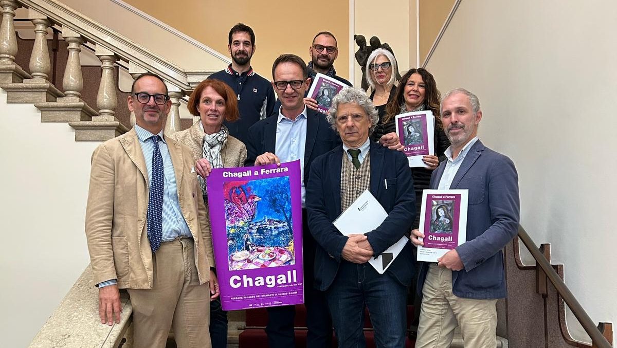 A fare il punto a lato della Conferenza stampa, Pietro Di Natale direttore della Fondazione Ferrara Arte sottolineando alcuni concetti: “Passeggiando in via Borgo dei Leoni cittadini e turisti incroceranno alcuni dei dipinti più significativi di Marc Chagall esposti a Palazzo dei Diamanti, dove celebriamo questo grande e amatissimo maestro dell’arte del Novecento nell’anniversario dei quarant’anni dalla sua scomparsa. La mostra è davvero un’occasione imperdibile: le duecento opere realizzate in oltre mezzo secolo di attività e le sale che presentano due sue celebri creazioni monumentali (la decorazione del soffitto dell’Opéra di Parigi e le vetrate della sinagoga di Hadassah a Gerusalemme) in una dimensione coinvolgente e spettacolare consentono infatti ai visitatori di conoscere e di approfondire tutti gli aspetti della poetica e della multiforme produzione di Chagall, che, come pochi altri, fu capace di trasformare l’esperienza personale in riflessione condivisa”.