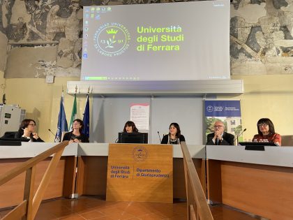 Nel pomeriggio si è poi tenuto il convegno pubblico “Corpi, potere, vulnerabilità, differenze. L’uguaglianza di genere oggi”, moderato da Antonella Vicenzi,giornalista e presidente dell’Associazione Stampa di Ferrara, con la partecipazione di Angela Travagli, assessora con delega alle Pari Opportunità del Comune di Ferrara, Annalisa Felletti, consigliera provinciale di Parità della Provincia di Ferrara, e Marcella Zappaterra, coordinatrice del Gruppo di lavoro europeo “Women empowerment and fight against gender-based violence”, Oiza Queens Day Obasuyi, dottoranda in Sociologia e Ricerca Sociale dell’Università di Bologna, e Barbara Leda Kenny, senior gender expert della Fondazione Giacomo Brodolini, aprendo una riflessione approfondita sulle molteplici dimensioni dell’uguaglianza di genere nella societàcontemporanea.