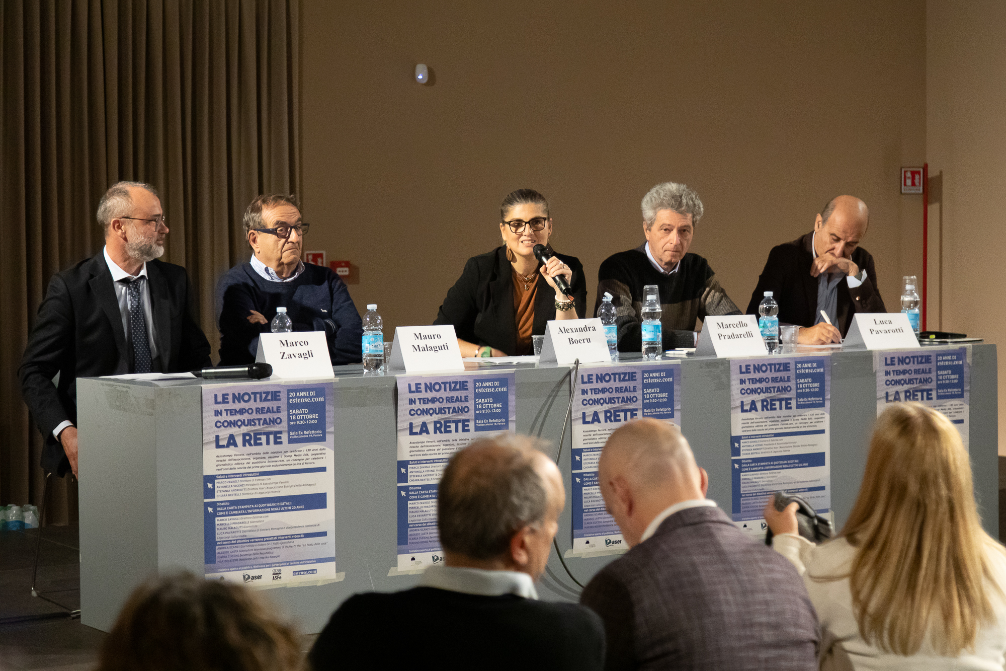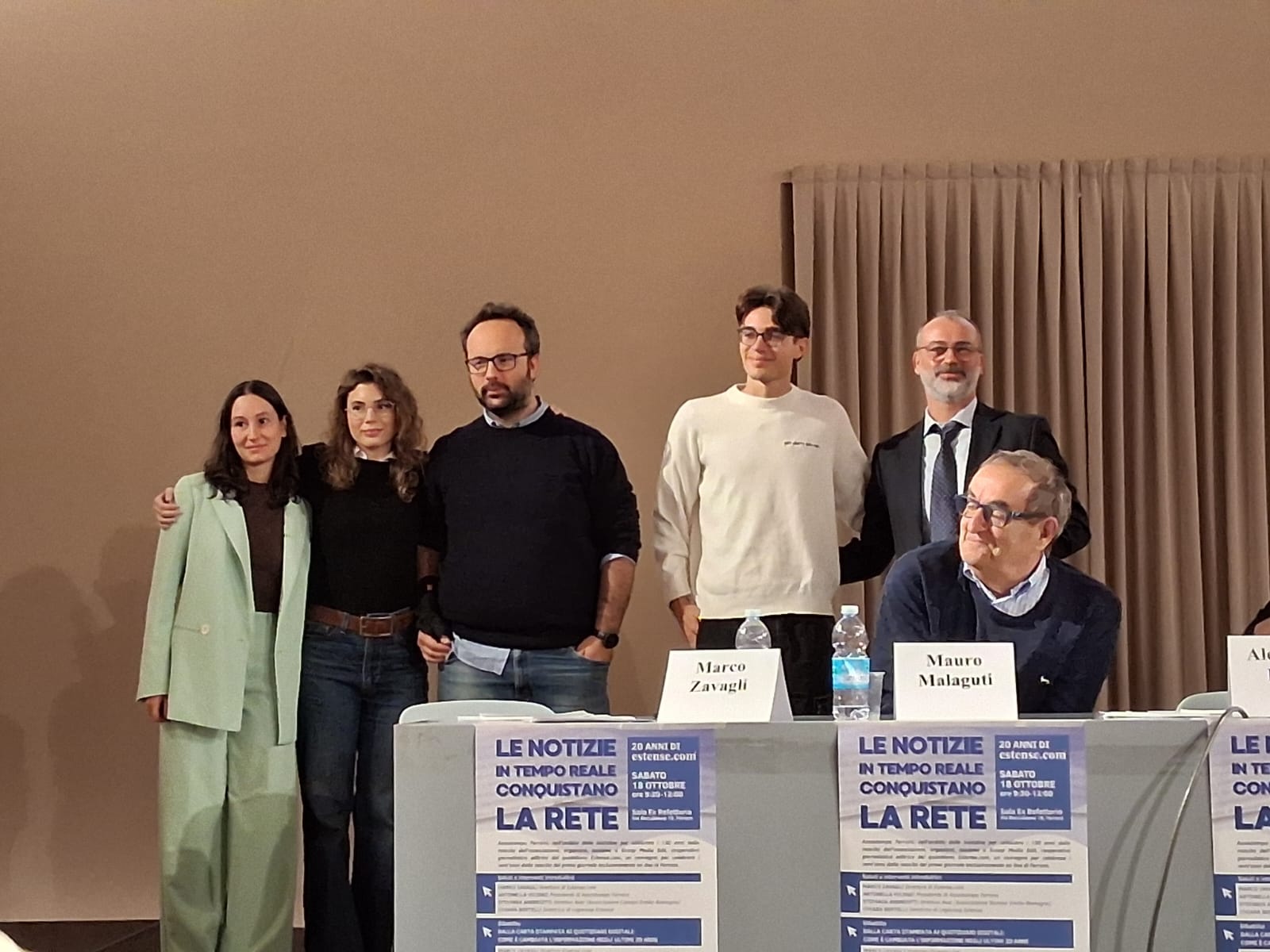 Dalla nascita di un’intuizione tra amici al tavolino di un bar, alla gestazione e realizzazione del primo quotidiano esclusivamente online della città di Ferrara, fino alla sua maturazione per due decenni, tra quelle gioie e dolori che solo un figlio può dare. Questa è estense.com, la creatura che tra i suoi padri, tra quei tre anziché “quattro amici al bar” come cantava Gino Paoli, annovera il suo attuale direttore, Marco Zavagli, che ieri (sabato 18 ottobre) ha festeggiato i vent’anni da quel 2005, data di lancio del suo quotidiano digitale, celebrata insieme a colleghi, amici e autorità.