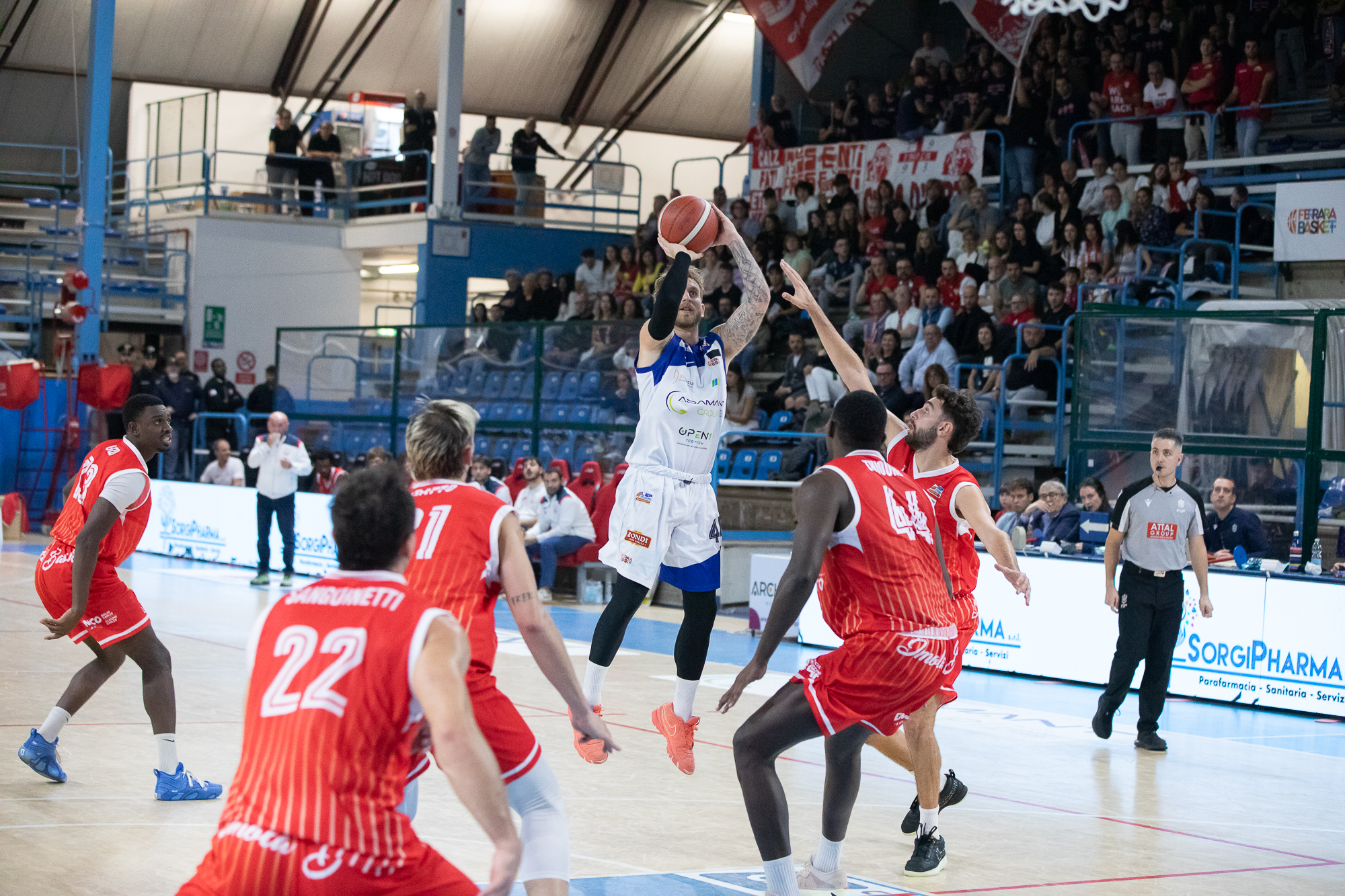 In partita solo in alcuni scampoli di gara, l’Adamant Ferrara paga tra le mura amiche della Bondi Arena le fatiche, purtroppo e soprattutto emotive, della settimana. Il derby con l’Andrea Costa Imola non è un monologo ma quasi, a eccezione del terzo quarto, con Sanguinetti a dettar legge da ogni angolo del campo, contrastato solo dal duo Renzi-Santiago in grande spolvero.