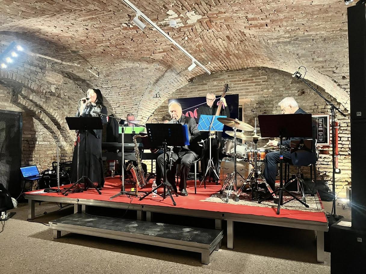 La sala, gremita oltre ogni previsione, ha accolto un pubblico entusiasta per un viaggio musicale nelle atmosfere raffinate dell’America anni ’30 e ’40. Sul palco il Classic Jazz Ensemble, formato da Bruno Fregna (clarinetto e sax tenore), Andrea Zardi (pianoforte), Tiberio Bragaglia (chitarra), Giordano Giordani (contrabbasso elettrico) e Roberto Bergamini (batteria). Ospite d’eccezione Ambra Bianchi, che con la sua voce intensa e la sua presenza scenica ha saputo evocare con eleganza e passione l’epoca d’oro del jazz.