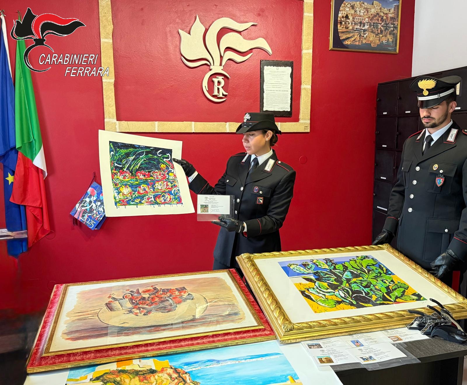 È quanto accaduto durante la nottata dello scorso 21 ottobre a Lido degli Estensi, quando i militari del Nucleo Operativo Radiomobile di Comacchio, dopo aver pedinato e osservato i movimenti dei due indagati, con l’aiuto dei carabinieri della locale stazione e quelli del Nucleo Tutela Patrimonio Culturale di Bologna, hanno fatto irruzione in un magazzino trasformato in un vero e proprio laboratorio per la contraffazione di opere d’arte, ritrovando numerosi quadri, stampe e litografie, risultate tutte non autentiche.
