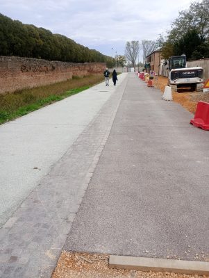 è in fase di ultimazione la “sistemazione” del sottomura in prossimità del torrione di san Giovanni con la costruzione di una strada palesemente sovradimensionata che sembra ignorare totalmente che l’intervento è ubicato nel vallo delle Mura;