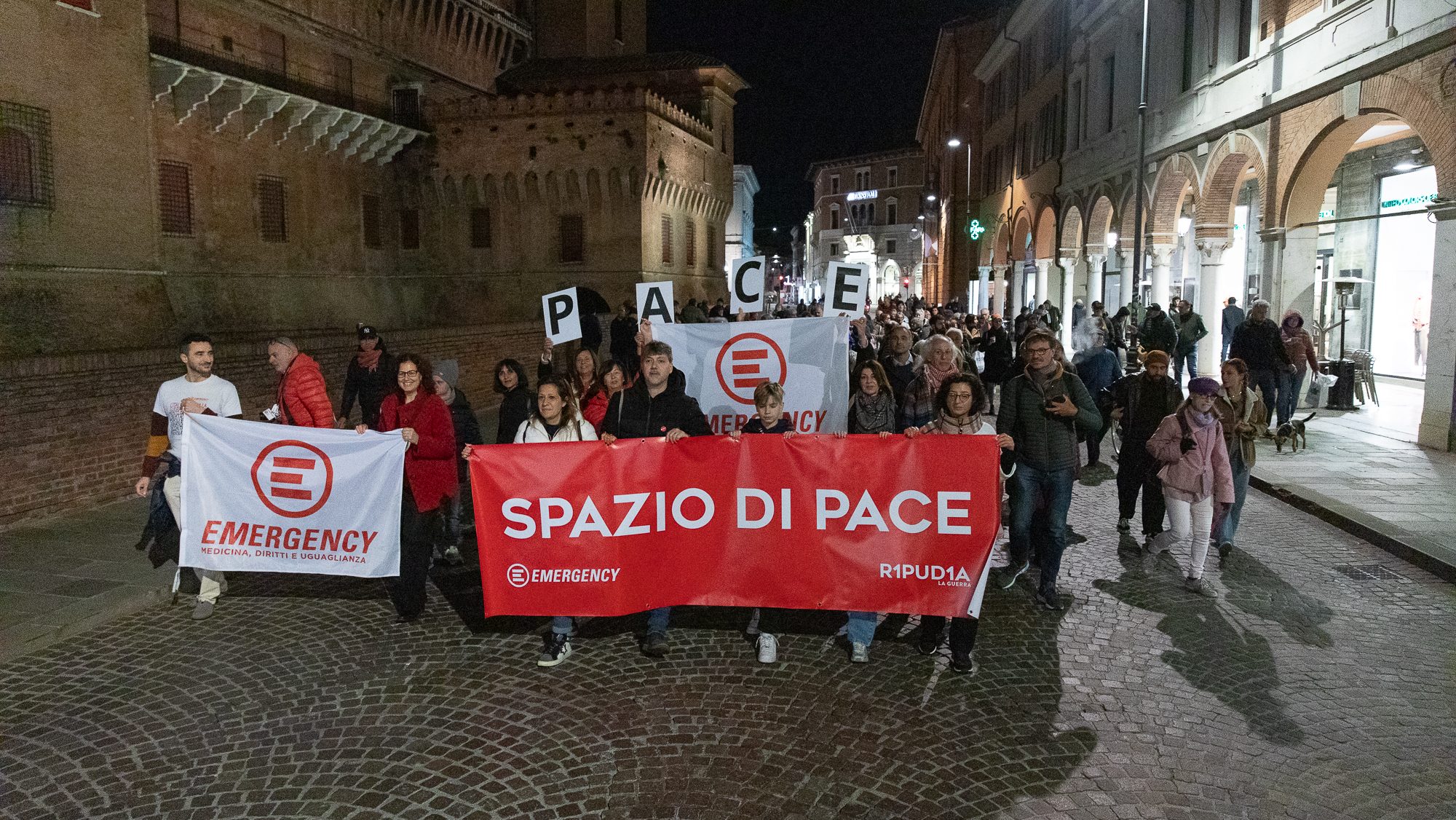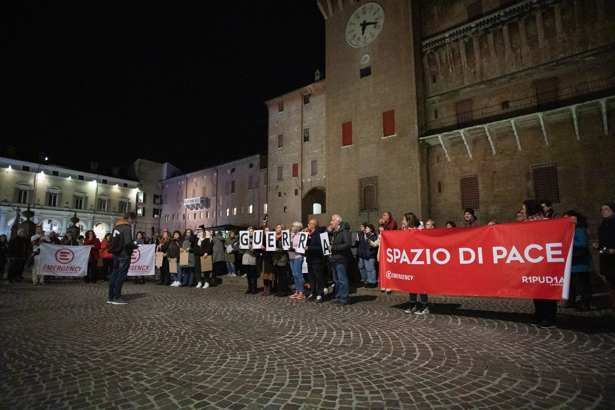 Durante la manifestazione oltre al manifesto dell’evento sono state condivise testimonianze e riflessioni: “Noi la guerra la conosciamo bene. L’abbiamo vista, l’abbiamo curata, ne abbiamo ascoltato le storie nei nostri ospedali, assistiamo a una propaganda che giustifica il riarmo…miliardi che dovrebbero servire a sanità, scuola e ambiente destinati alla produzione di missili e munizioni.” Una presenza cittadina e attiva quella di Emergency, che non ha voluto solo tenere viva la memoria ma anche sollecitare all’azione, “Perché la pace non è silenzio, ma responsabilità condivisa” è stato ricordato più volte. “Dobbiamo stanare dove la guerra si nasconde: nelle filiere economiche, nelle logiche industriali, nella produzione culturale, nei discorsi che la normalizzano.” La mobilitazione ferrarese si inserisce in una rete nazionale più ampia, a significare che “l’Italia ripudia la guerra” non solo come enunciazione ma come vera e propria pratica sociale.