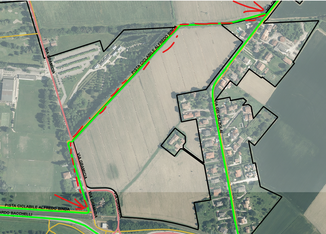3. Via Gramicia tra via Bacchelli e l’attraversamento ciclopedonale adiacente il campeggio comunale;