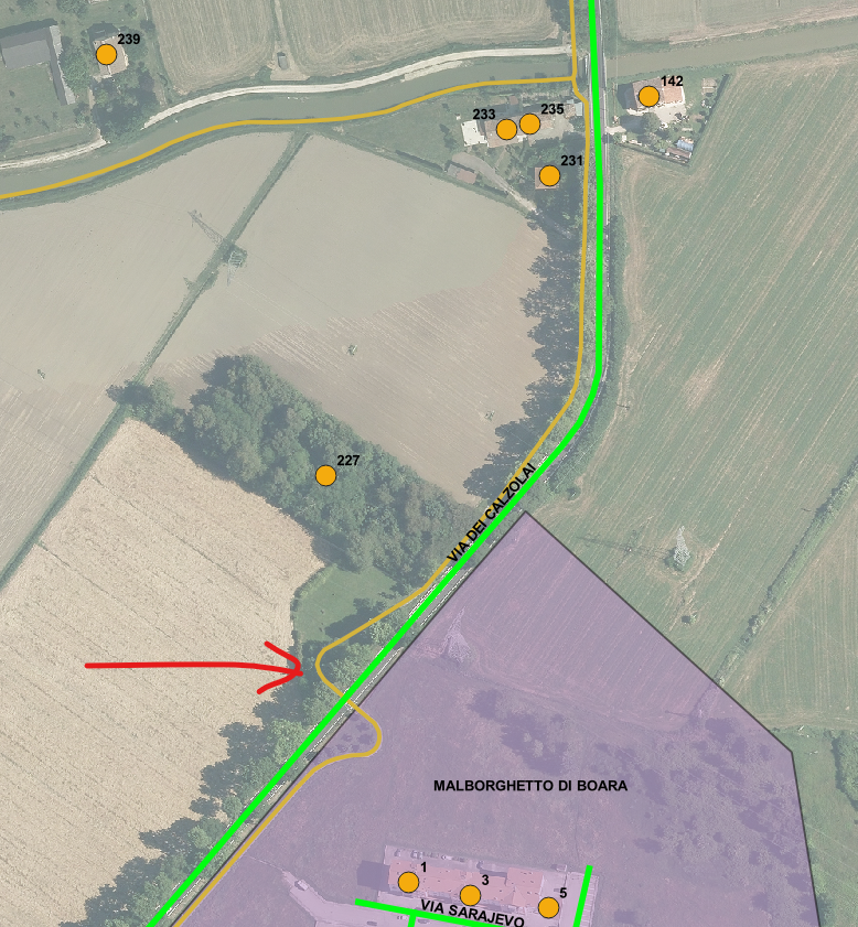 7. Argine destro del fiume Po dal confine con il comune di Riva del Po fino alla rampa di via Maria Chiara Nanetti (con chiusura al transito).
