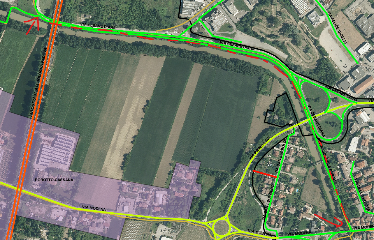 1. Via Cesare Diana tra l’intersezione con via P.Levi e l’accesso alla ciclabile di via Modena;