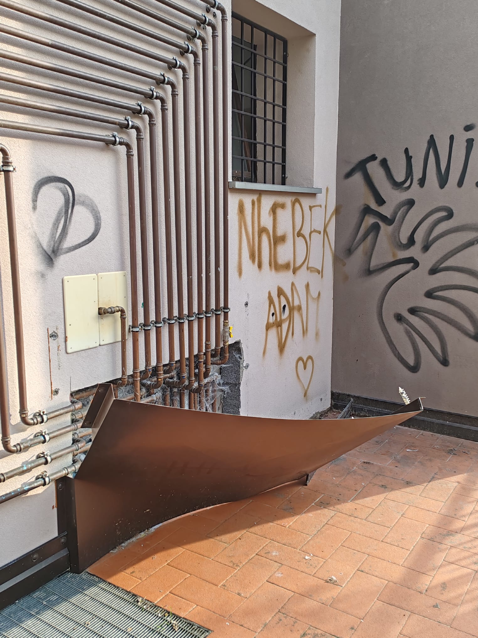 L’episodio più grave è avvenuto la notte scorsa, quando sono state strappate le coperture dei tubi del gas: una manomissione che lo Studio definisce “tubi del gas, che ora sono privi di protezione, danneggiata dall’ennesimo atto vandalico”. Una situazione che desta forte preoccupazione sotto il profilo della sicurezza.