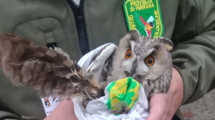 I Vigili del Fuoco hanno provveduto a tagliare il ramo e a portare a riva l’esemplare in difficoltà. A quel punto le Gev si sono presentate offrendo il proprio supporto per il salvataggio e le successive procedure. Il gufo è stato così affidato alle Guardie ecologiche, che lo hanno trasportato immediatamente al Giardino delle Capinere della Lipu di Ferrara.
