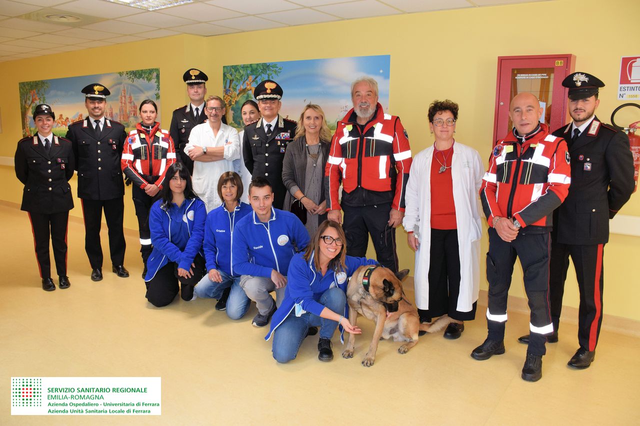 I militari, accompagnati dal cane “Brig” dell’Anc di Cento, hanno consegnato alcuni doni simbolici e augurato una pronta guarigione a tutti i piccoli pazienti.