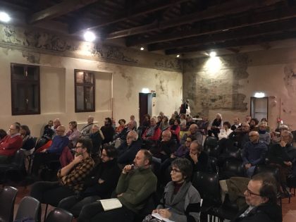 In apertura è stata Elena Buccoliero, attivista della Rete pace cittadina, a introdurre il dibattito con un appello in nome delle vittime più indifese e innocenti della guerra: “Chiedere di ripensare alle scelte di riarmo significa fare qualcosa per l’affermazione dei diritti dei bambini, che sicuramente hanno bisogno della nostra pace e non delle nostre spese militari”.