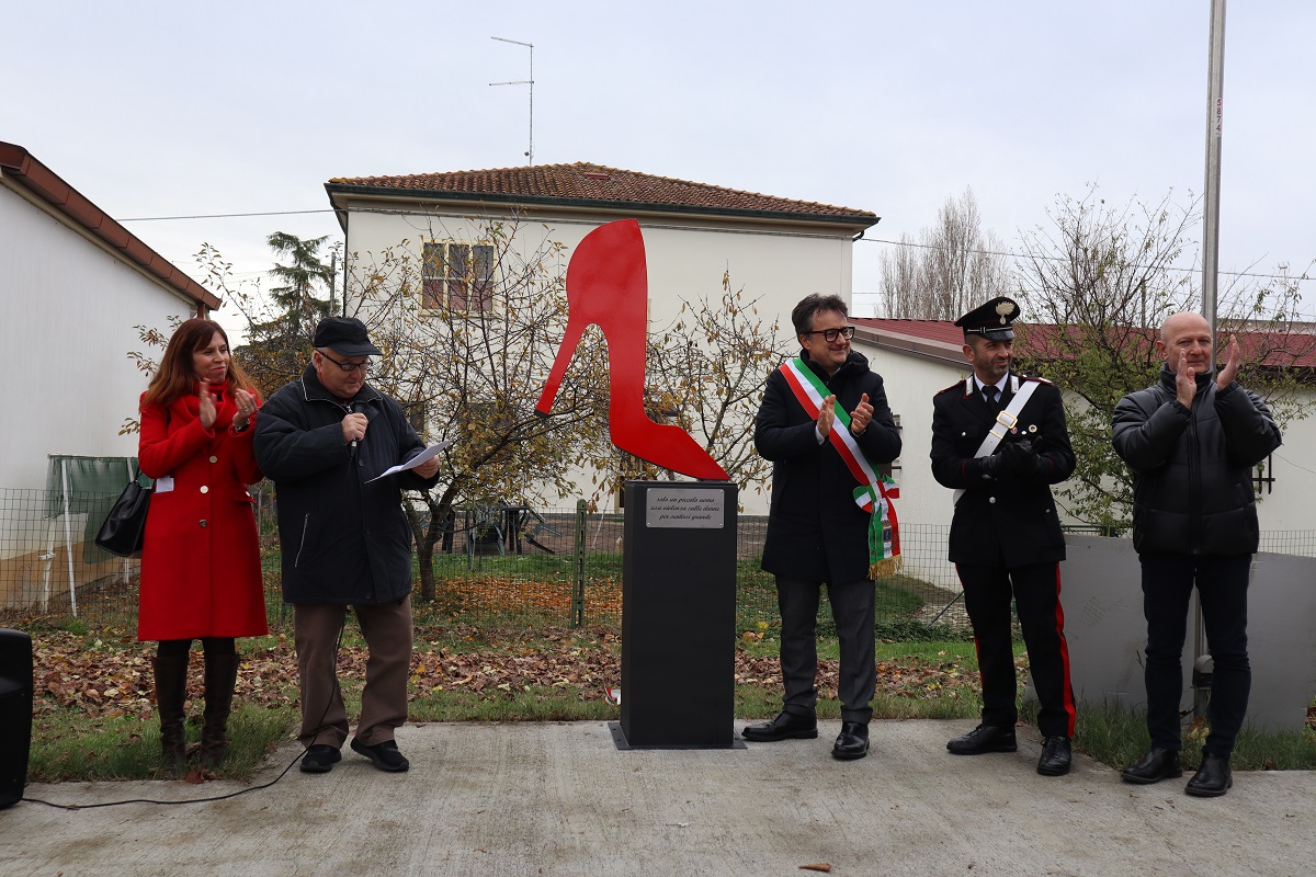 Negli anni sono stati coinvolti soprattutto i giovani, «con progettualità dentro e fuori le scuole e con la loro attiva partecipazione alle commemorazioni del 25 novembre – ha ribadito l’assessore competente, Francesca Aria Poltronieri –. Oggi per motivi di studio e di distanza i nostri giovani non hanno potuto essere presenti, ma ho sentito le scuole e il Ccrr i quali hanno espresso parole di apprezzamento per la scopertura odierna». L’installazione della Compagnia Ruspante è orientata a dare un segnale forte contro la violenza sulle donne, «continuando un percorso di solidarietà con il territorio che va avanti dalla fondazione del 1988 – sono state le parole del presidente Graziano Piazzi, il quale ha anche ringraziato ciascuno dei promotori e dei realizzatori dell’installazione –. La scarpa rossa è una presenza silenziosa che parla forte: è il simbolo di tutte le donne che hanno subito violenza ed è un monito a ricordarci di aiutare chi vede minacciate l’incolumità e la dignità». Il monumento è stato benedetto dal parroco don Roberto Sibani, e la scopertura è stata salutata dai canti in portoghese di un gruppo di missionari brasiliani.