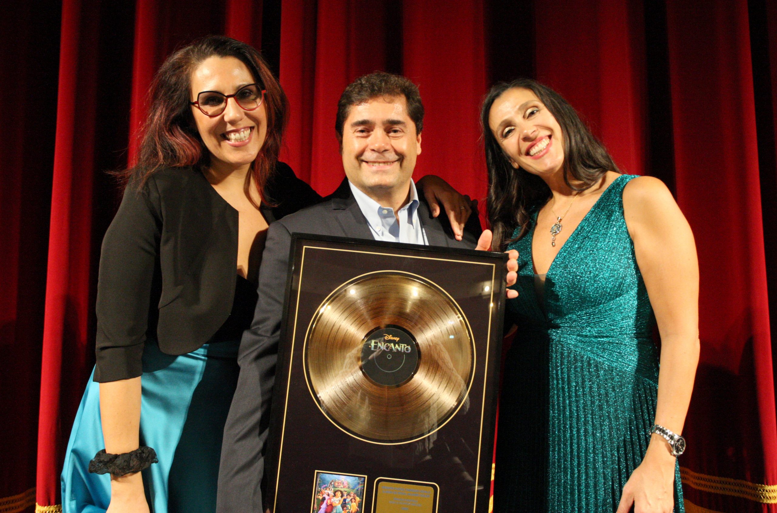 A rendere ancor più significativo il momento, la presenza al suo fianco di Virginia e Lorena Brancucci, rispettivamente direttrice musicale e paroliera ufficiale delle versioni italiane dei film Disney, che gli hanno consegnato il prestigioso riconoscimento per il brano “Non si nomina Bruno”, tratto dal film Disney Encanto.
