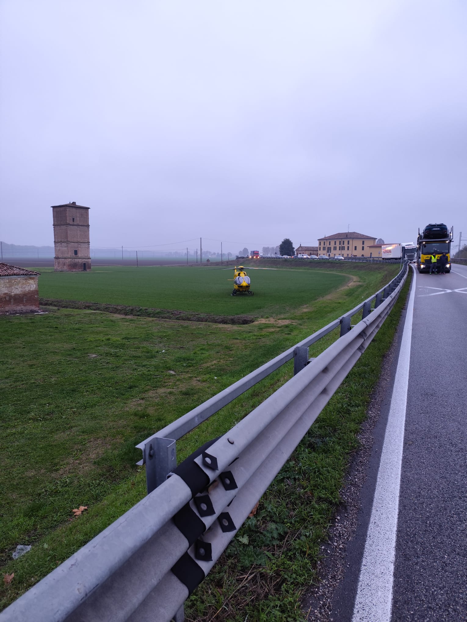 Sul posto sono intervenuti i Vigili del Fuoco con due squadre, una da Ferrara e una da Bondeno, oltre ai sanitari del 118 con ambulanza ed elisoccorso. I primi hanno supportato i secondi nel recupero dei due feriti più gravi, i due autisti, mentre sono al lavoro per ripristinare il traffico sulla strada e la linea ferroviaria. La strada provinciale 69 Virgiliana è stata riaperta al traffico intorno alle 15 ma sarà nuovamente chiusa al traffico dalle 8.45 di mercoledì 26 novembre.