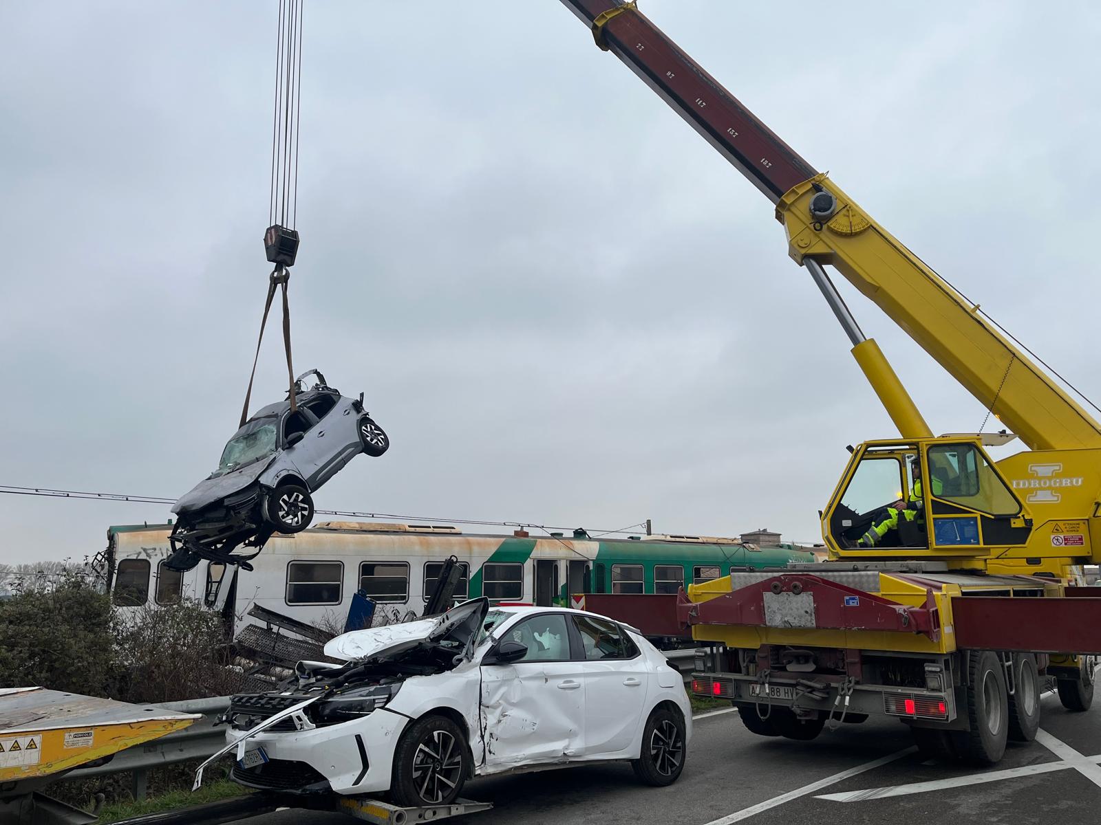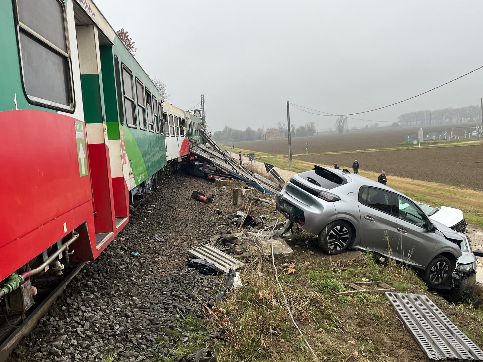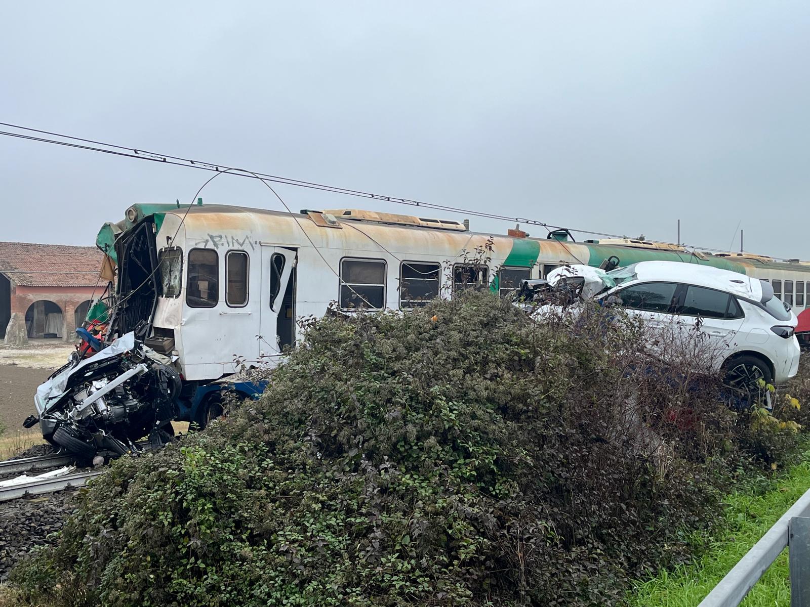 Danni ingenti ai mezzi, al treno e al camion, con diverse automobili trasportate dalla bisarca che sono finite sull’asfalto e sono andate distrutte.