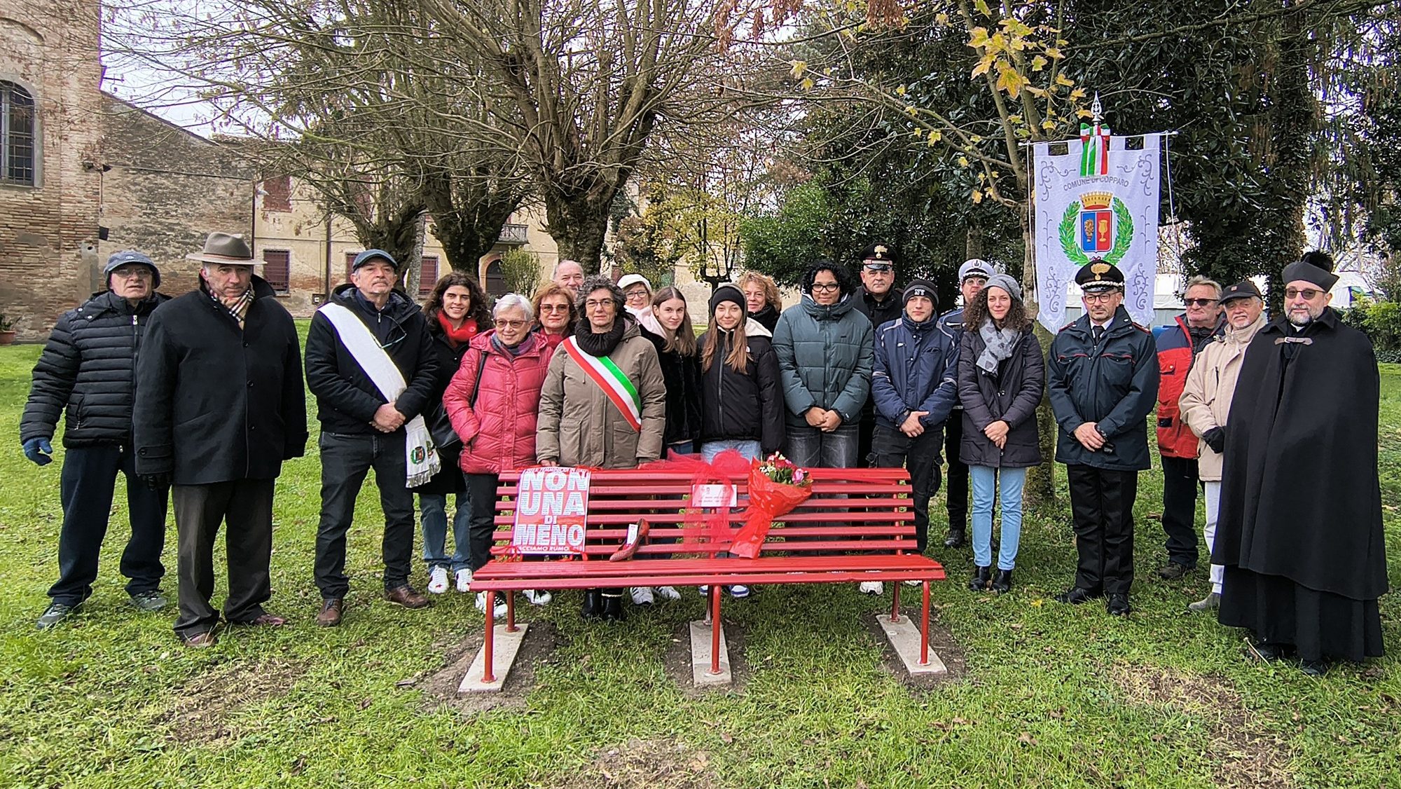 Saletta. A Saletta è stato sciolto il nastro che avvolgeva la nuova panchina rossa nel parco accanto alla chiesa di San Michele Arcangelo. Un gesto simbolico, delicato, che ha sostituito il consueto taglio, per accentuare il messaggio contro la violenza sulle donne. Nella frazione, nella Giornata internazionale per l’eliminazione della violenza sulle donne che cade il 25 novembre, è stata così inaugurata la quarta panchina sul territorio, fortemente voluta dal Coordinamento Donne Spi Cgil Copparo – Ro e dal Comune di Copparo.