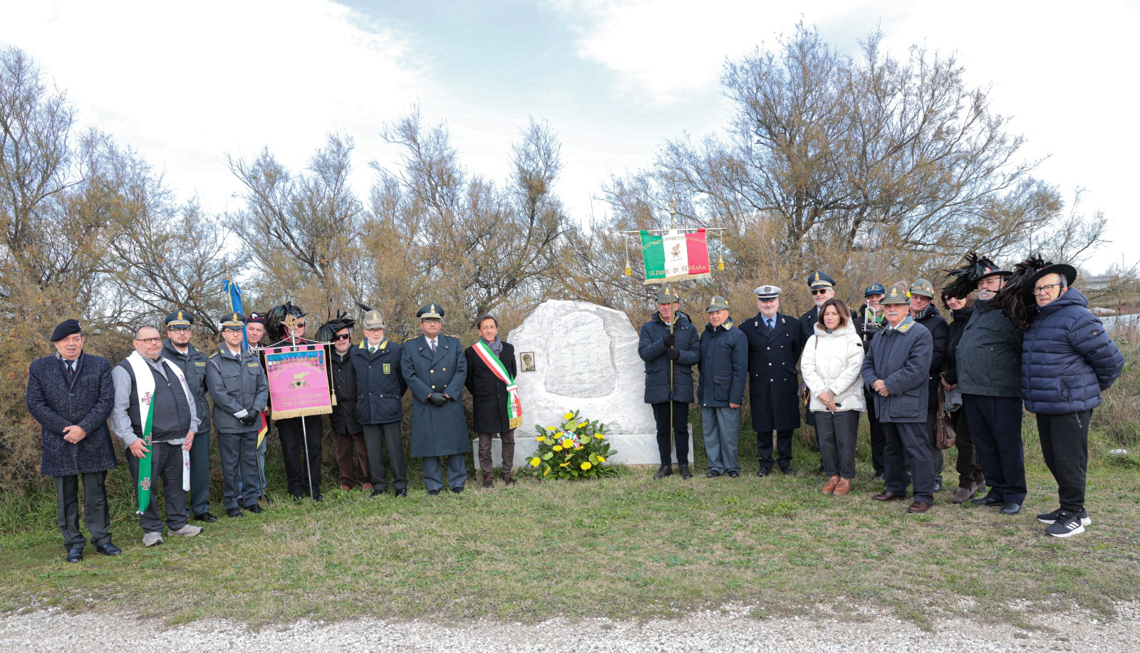 Comacchio. Ieri, giovedì 27 novembre, dinanzi al cippo che sorge all’interno della Salina di Comacchio, è stato commemorato l’80° anniversario dell’uccisione del sottobrigadiere della Guardia di Finanza Erio Bertarini, con scoprimento dell’immagine del sottufficiale, concessa dal Museo Storico della Guardia di Finanza.