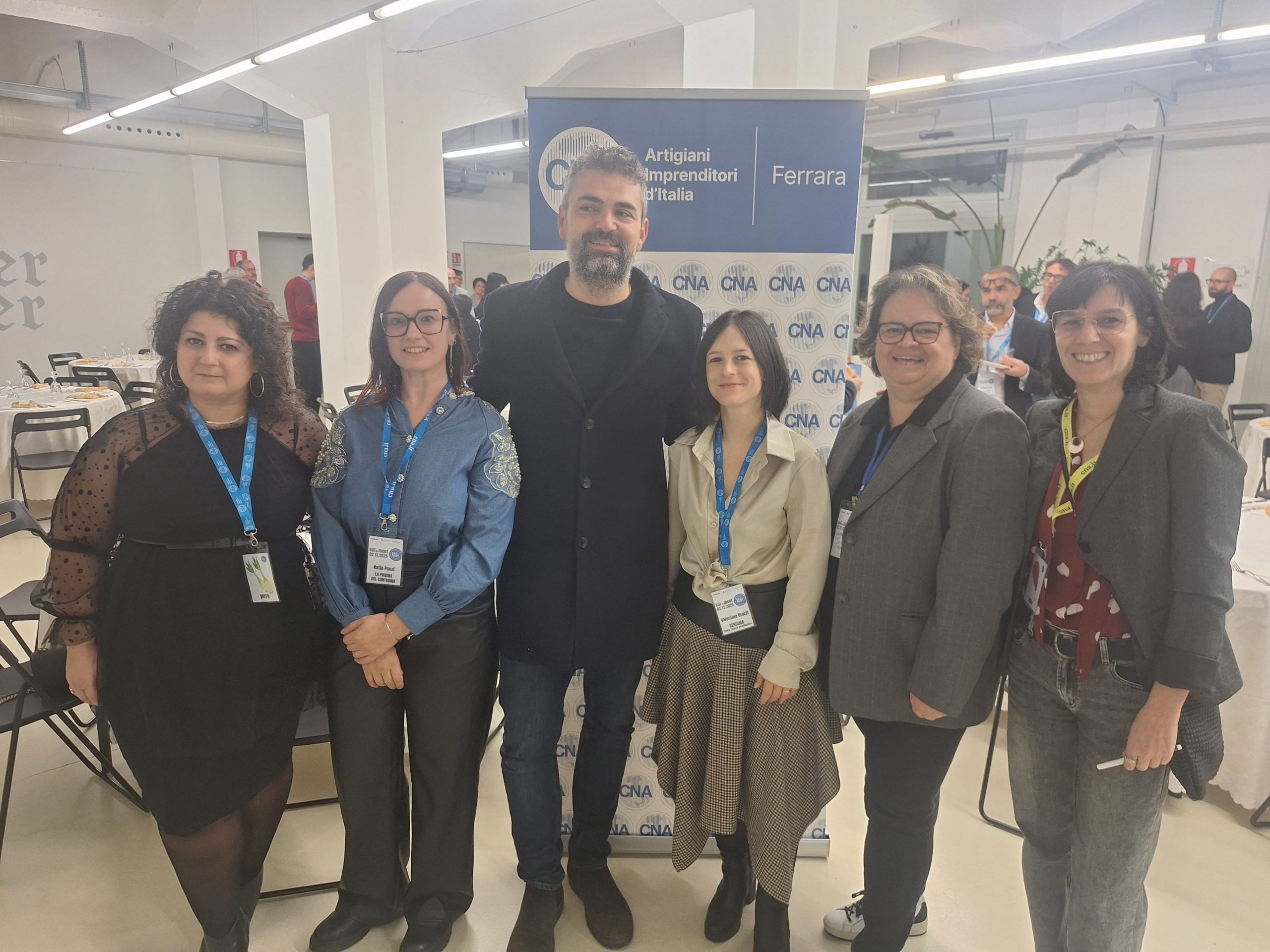 Sono donne la presidente dei Giovani di Cna Ferrara Valentina Grazzi, la presidente regionale Katia Ponzi, la presidente nazionale Selene Re e la presidente di Cna Ferrara Jessica Morelli. Donna anche la funzionaria che organizzato tutto, Silvia Merli.