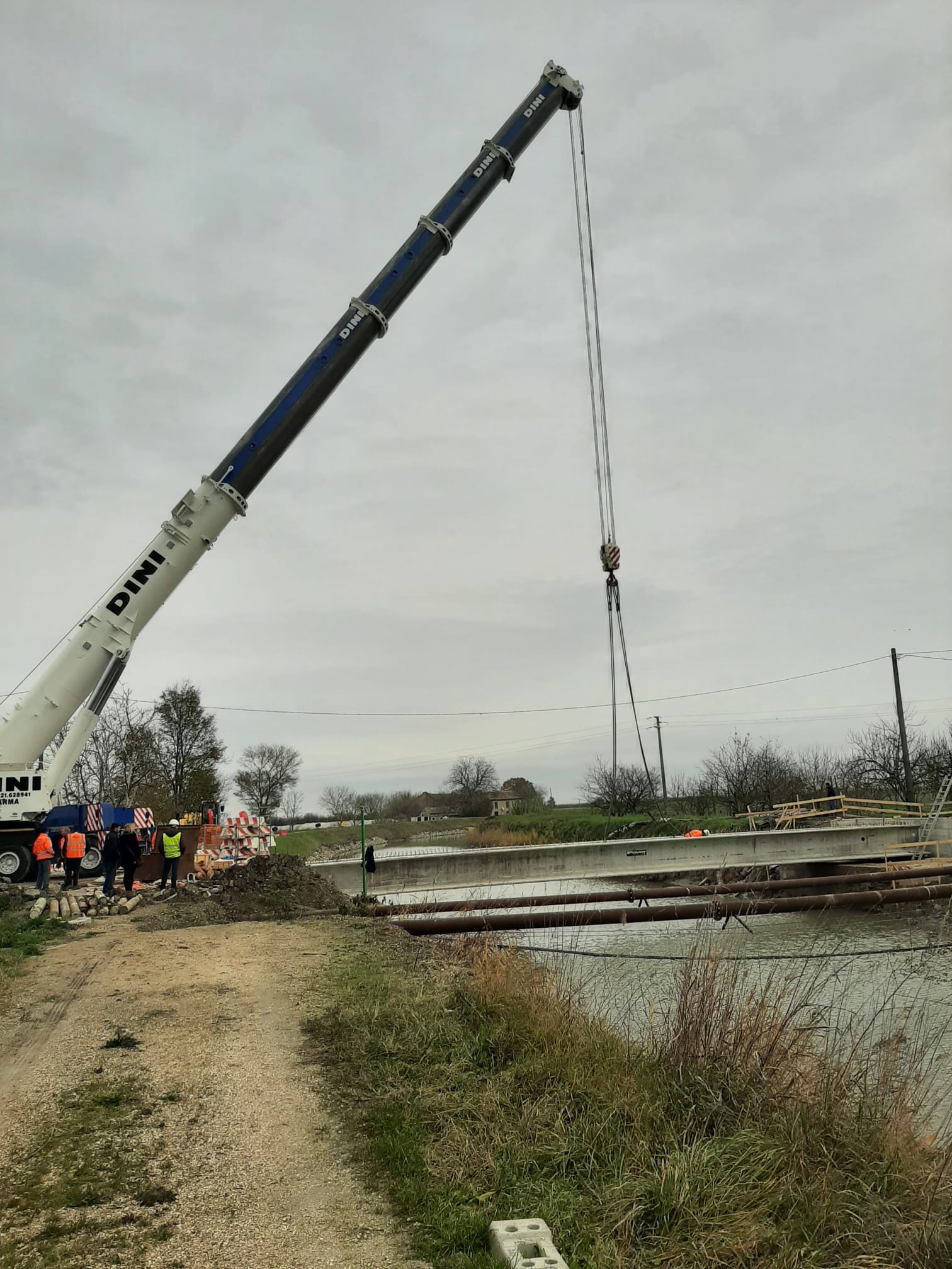 Coccanile. In via Primo Boccati a Coccanile, il cantiere per la realizzazione del nuovo ponte sul Canal Bianco sta procedendo.