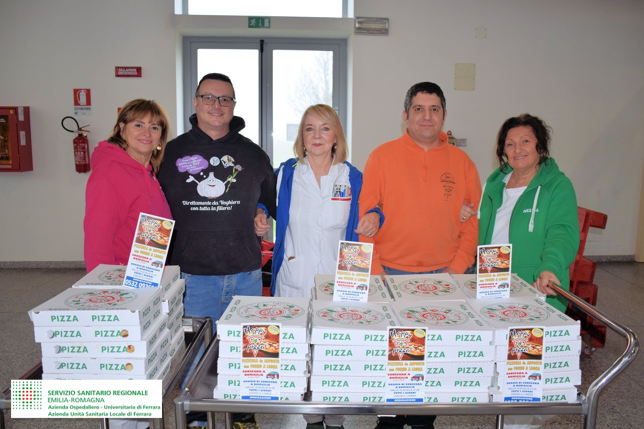 La donazione è avvenuta anche grazie al contributo di Asd Matside Nordest, Brasilian JiuJsu e Palestra Ginnastica Ferrara. La consegna è avvenuta in Area Accoglienza, in presenta del personale sanitario dei Reparti, che ha poi provveduto a distribuire le pizze ai bambini.