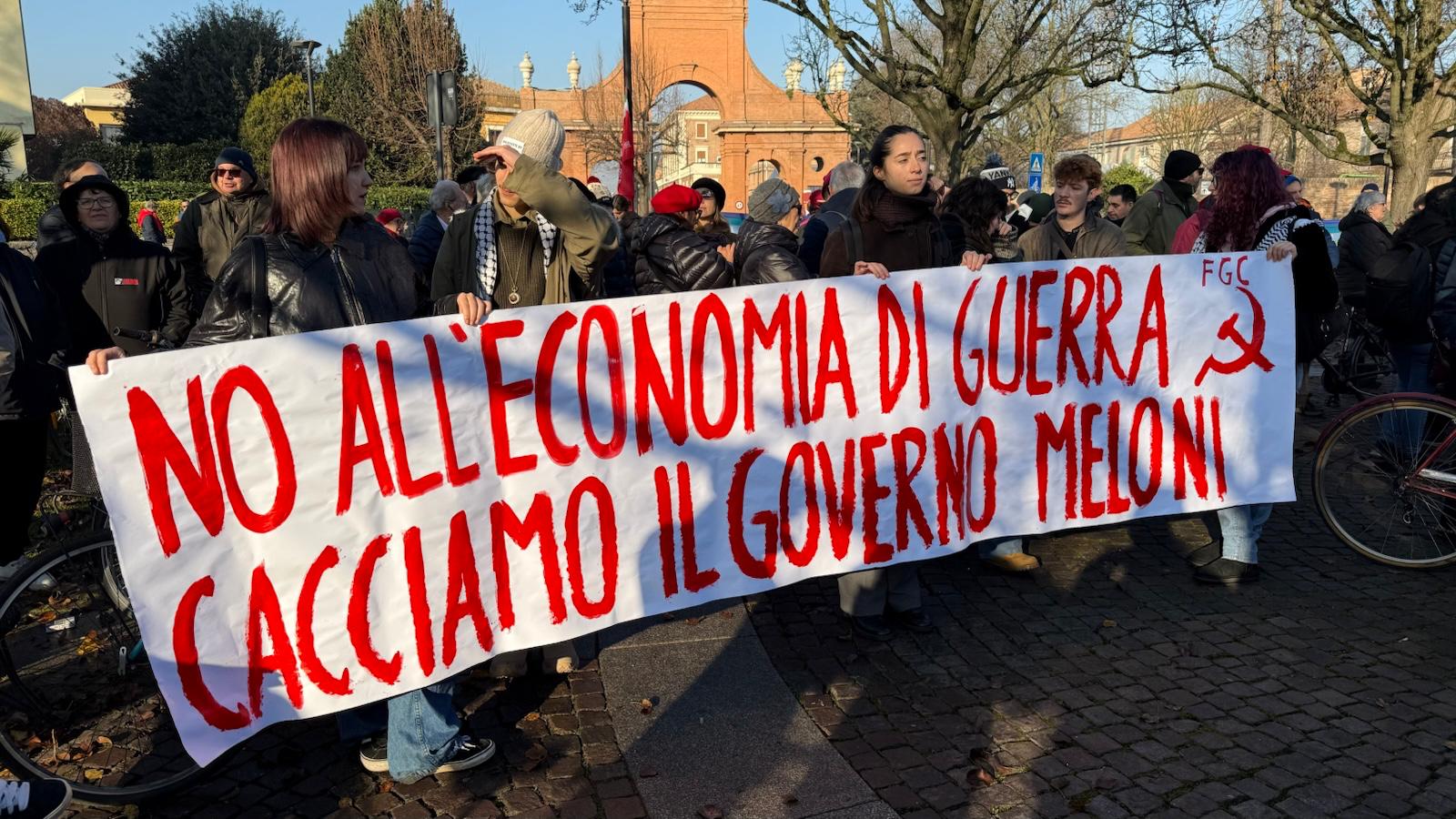 Non sono quattro gatti, come appare scritto in un cartello, sono circa 300 i manifestanti chiamati a raccolta dalla Cgil di Ferrara in piazzale Medaglie d’Oro per la giornata di sciopero nazionale convocata per dire no al riarmo e “a una manovra finanziaria profondamente ingiusta”.