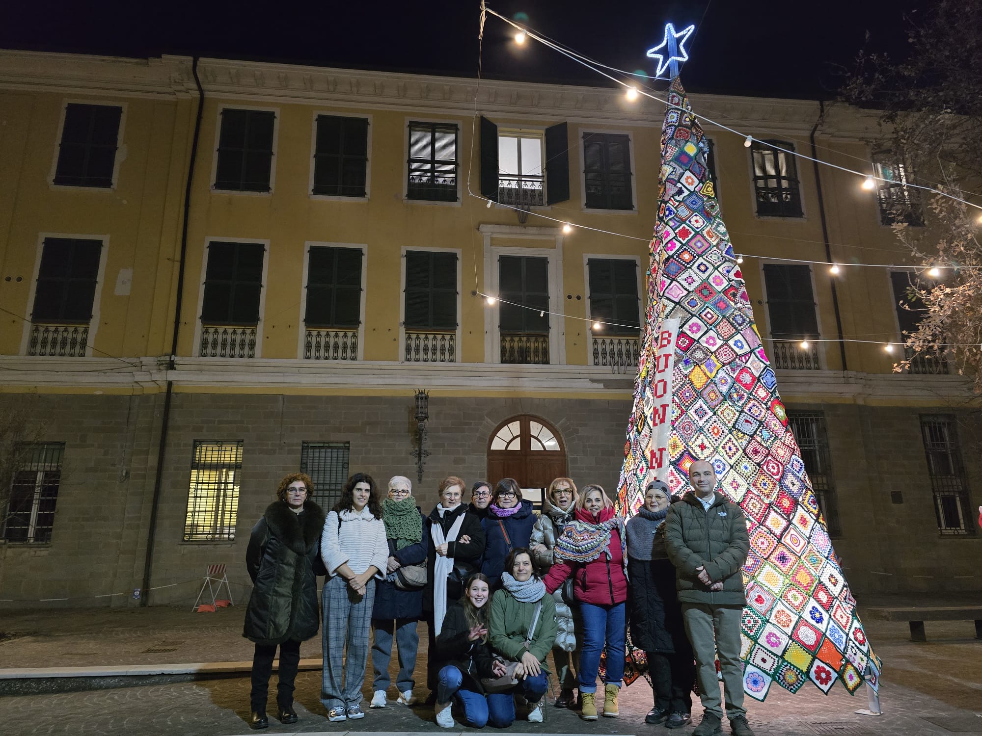 Coinvolgimento sociale, originalità, tradizione e sostenibilità (considerando che le mattonelle dell’albero sono state realizzate con lana e filati di recupero) e valorizzazione del centro storico sono i valori aggiunti dell’opera che è stata illuminata alla presenza del sindaco Fabrizio Pagnoni, accompagnato dal vicesindaco Bruna Cirelli e dall’assessore alla Cultura Francesca Buraschi.
