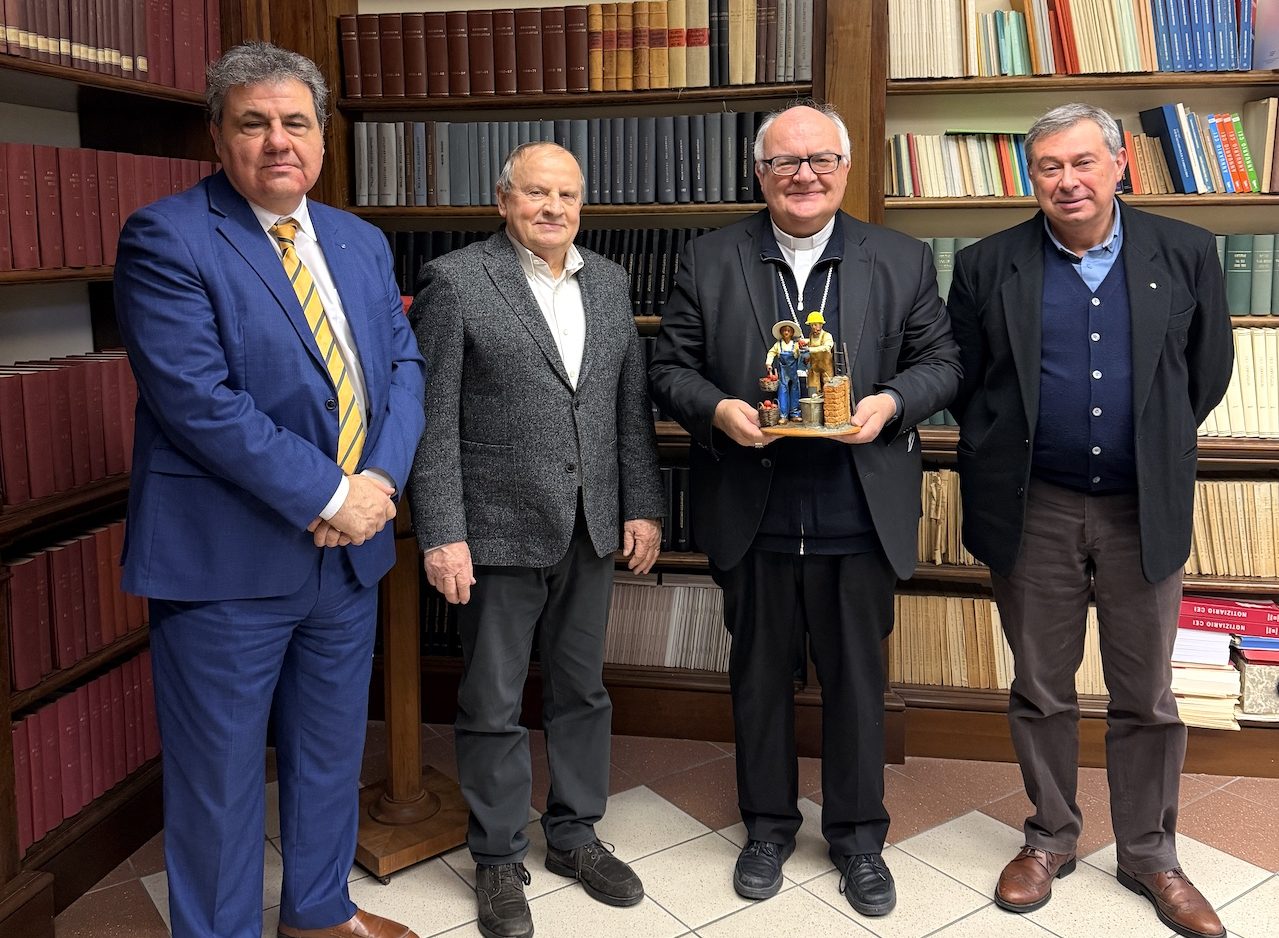 Martedì 16 dicembre la consegna della statuina ha toccato Ferrara, con il vice direttore di Coldiretti, Riccardo Casotti, il vice presidente di Confartigianato Mauro Bersanetti e il segretario provinciale di Confartigianato Paolo Cirelli, che hanno incontrato il vescovo Giancarlo Perego, illustrando la rappresentazione di quest’anno, realizzata dal maestro artigiano leccese Claudio Riso, che ha saputo tradurre questi valori in un simbolo semplice e immediato attraverso la raffigurazione di una agricoltrice e di un muratore.