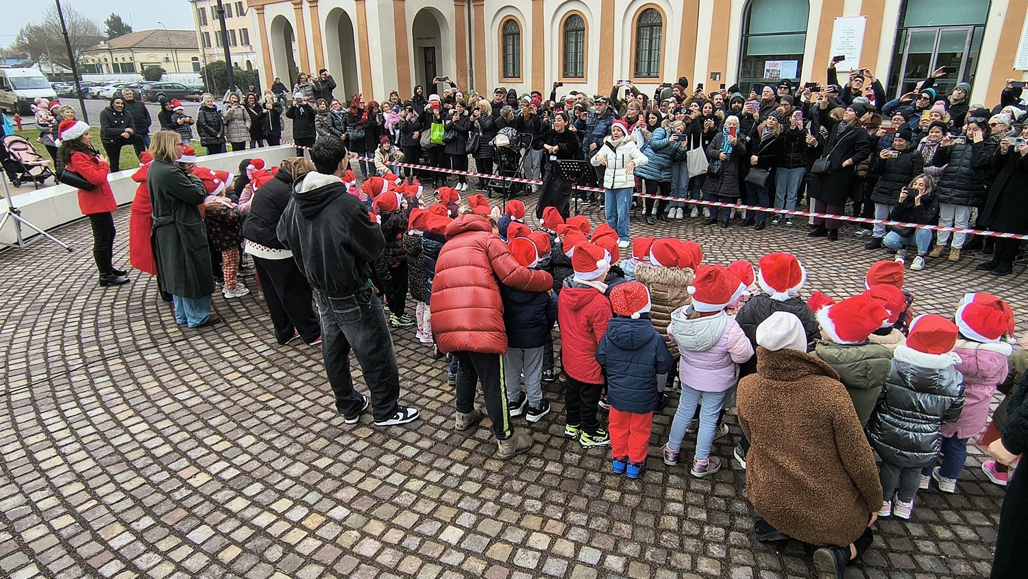 Copparo. Bambine e bambini della scuola d’Infanzia “Gulinelli” e del Polo d’Infanzia “Cadore” hanno portato gioia nel centro cittadino e hanno augurato un “Buon Natale” a tutta la comunità. I piccoli, accompagnati dalle loro educatrici e dal personale delle due strutture, sono stati infatti protagonisti del tradizionale concerto natalizio dinanzi alla Residenza Municipale che si è tenuto nella mattinata di venerdì 19 dicembre e hanno scaldato i cuori di tutti i presenti con brani e una poesia a tema. Ad applaudirli, anche l’assessore alla Scuola e alla Cultura Francesca Buraschi – che ha portato il saluto dell’Amministrazione comunale -, il vice sindaco Bruna Cirelli, l’assessore Alessandro Amà e la coordinatrice pedagogica dell’Unione Terre e Fiumi che ha introdotto l’esibizione della Corale di Natale che ha augurato a tutti «tempo, amore, sogni, doni e serenità».
