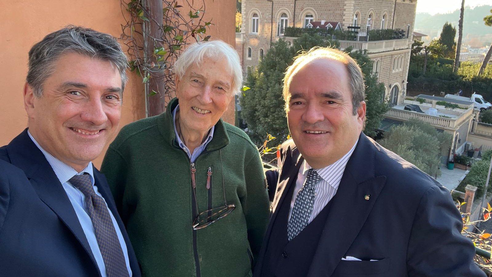 Nei giorni scorsi, Alberto Faustini, presidente della giuria tecnica del Premio Estense, e Gian Luigi Zaina, presidente uscente della Fondazione Premio Estense, hanno incontrato Corrado Augias a Roma per consegnargli la 41^ Colubrina d’Argento, simbolo del “Riconoscimento Gianni Granzotto. Uno stile nell’informazione”, assegnato in occasione della 61^ edizione del Premio Estense che si è tenuta lo scorso 27 settembre presso il Teatro Comunale Claudio Abbado di Ferrara.