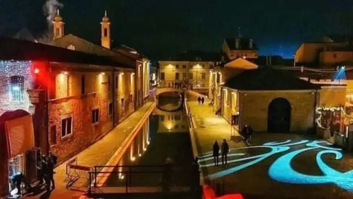 Comacchio. Il cuore più antico e suggestivo della città di Comacchio di Piazzetta Trepponti si prepara ad accogliere l’arrivo del nuovo anno.