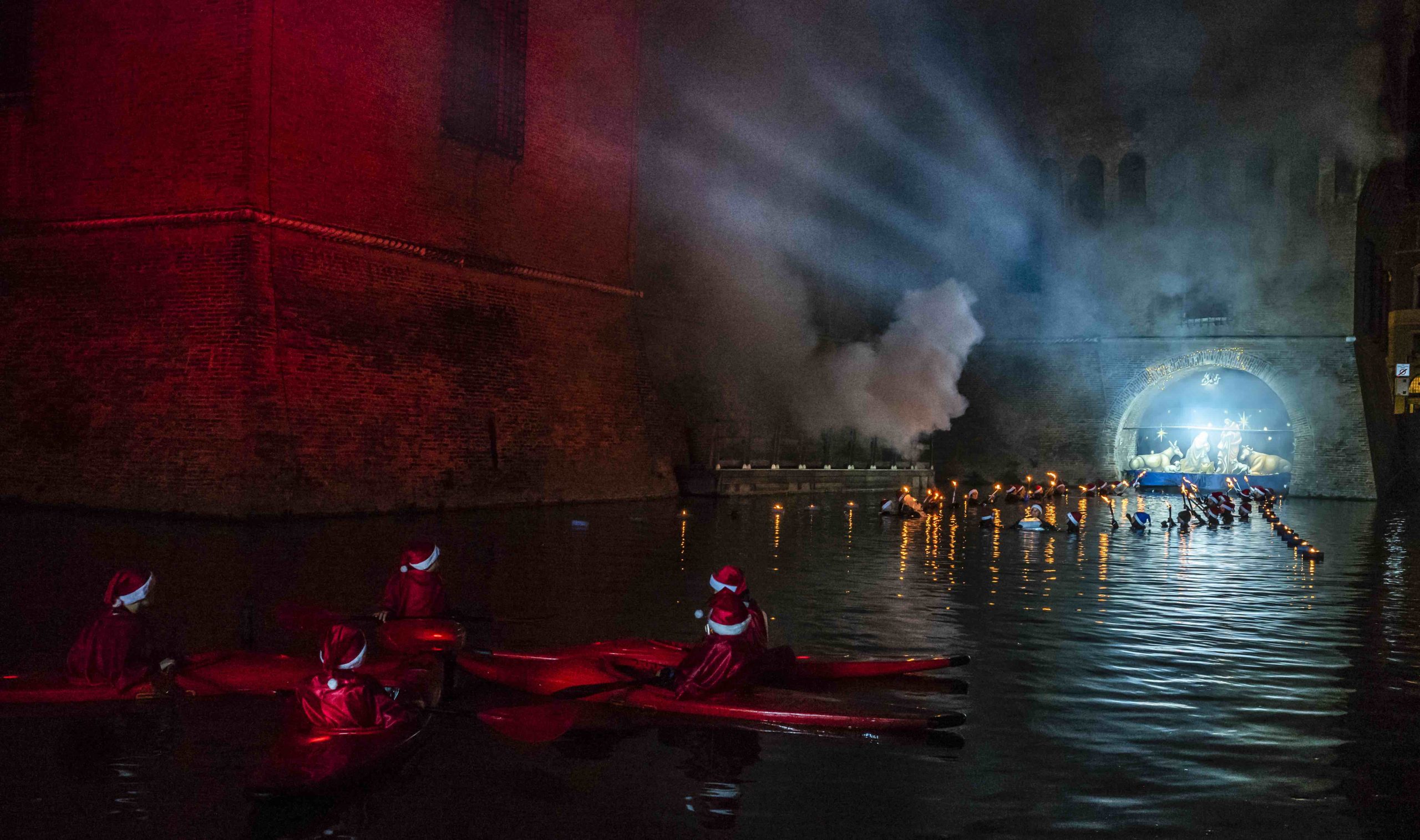 La sera della Vigilia di Natale torna uno degli appuntamenti più suggestivi e attesi delle festività ferraresi: il Presepe sull’Acqua, ambientato nello storico fossato del Castello Estense.