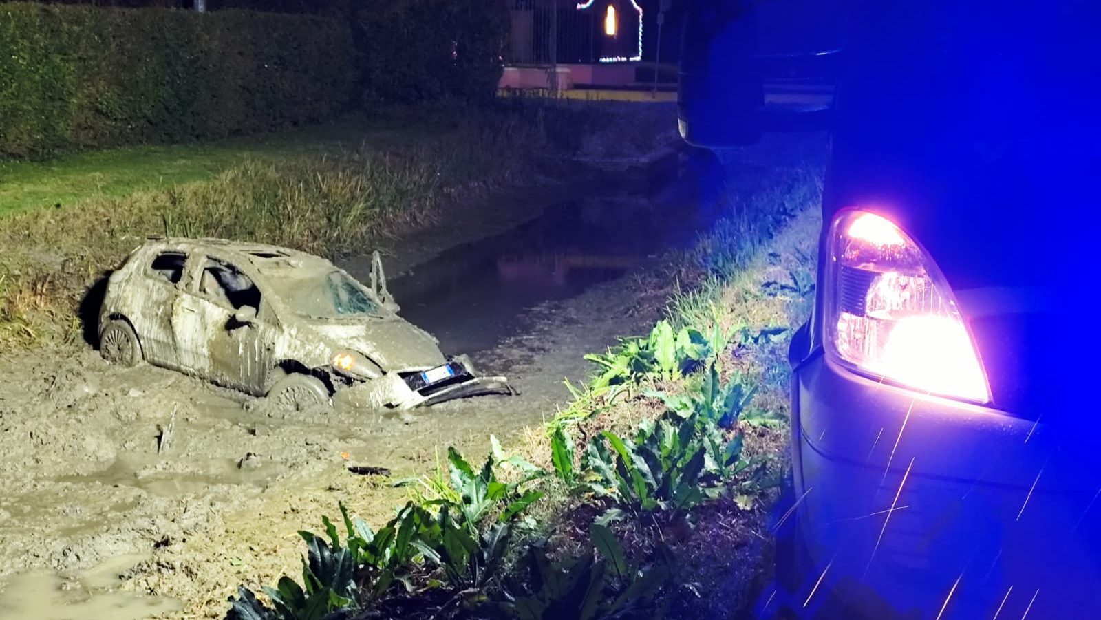 L’auto, dopo aver perso il controllo, si è ribaltata finendo nel canale che costeggia la carreggiata. Fortunatamente il corso d’acqua, in quel tratto, era quasi in secca e pieno di fango, circostanza che ha probabilmente limitato le conseguenze dell’impatto.
