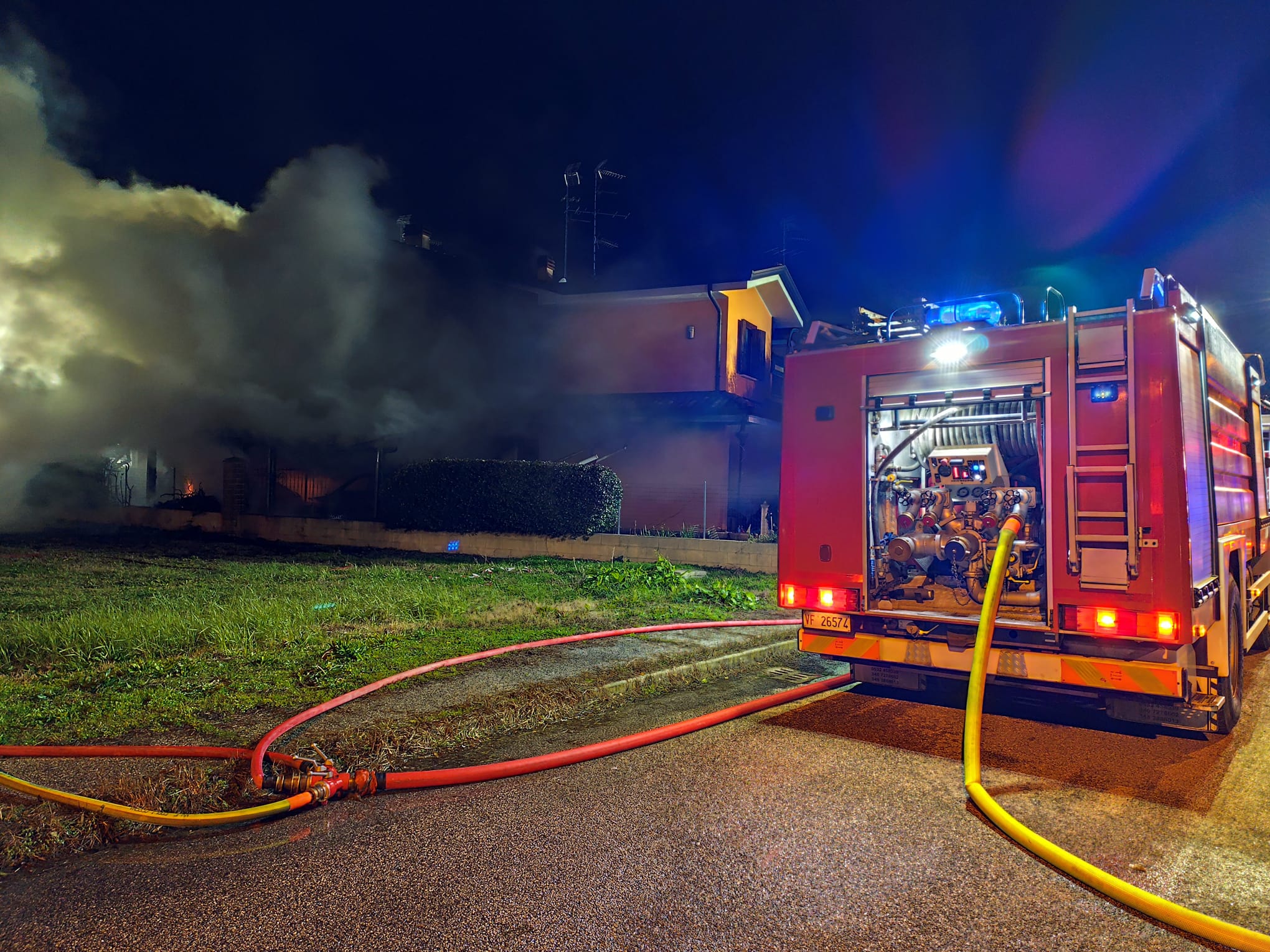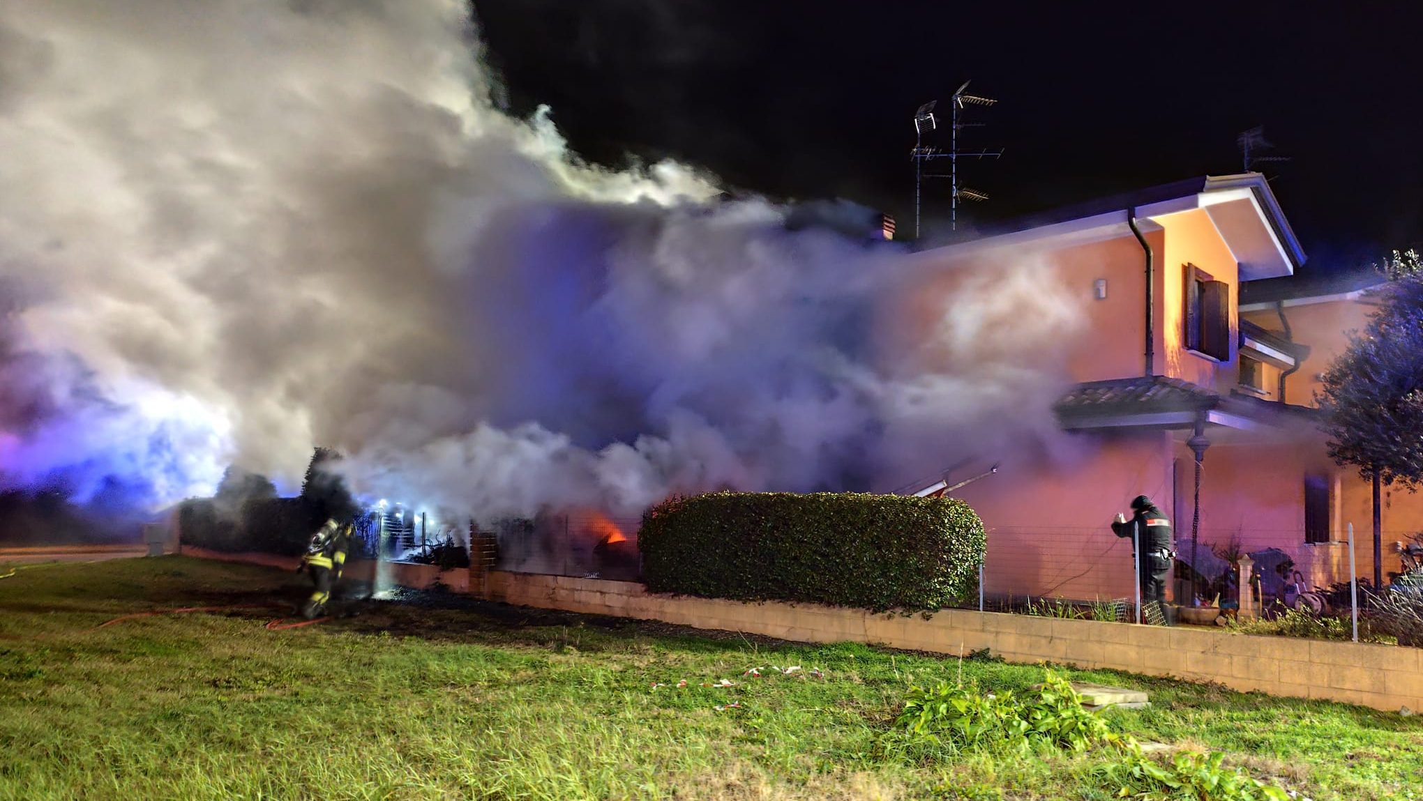 Fortunatamente, secondo le prime informazioni, le famiglie interessate sono state evacuate e non si registrano feriti. A scopo precauzionale sono comunque giunti sul luogo dell’incendio anche i sanitari del 118, pronti a intervenire in caso di emergenze, insieme ai carabinieri, che hanno avviato gli accertamenti di competenza. Coinvolti dalle fiamme diversi ambienti delle due abitazioni adiacenti: i due garage, i bagni, le camere da letto e i terrazzi
